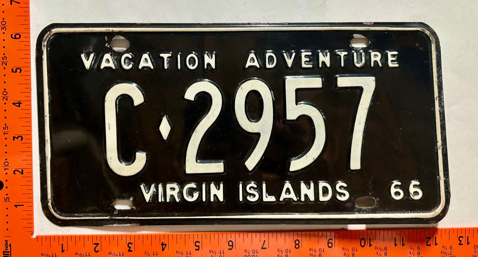 1966 Virgin Islands #C-2957 Passenger License Plate