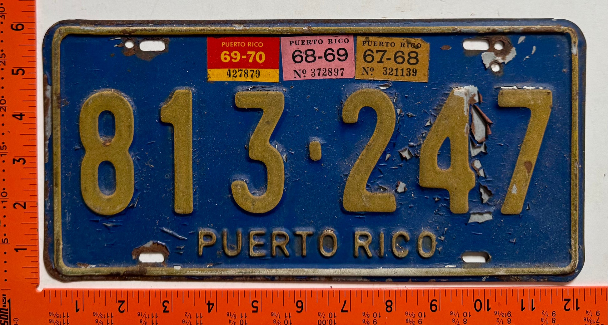1967-1970 Puerto Rico #813-247 Passenger License Plate