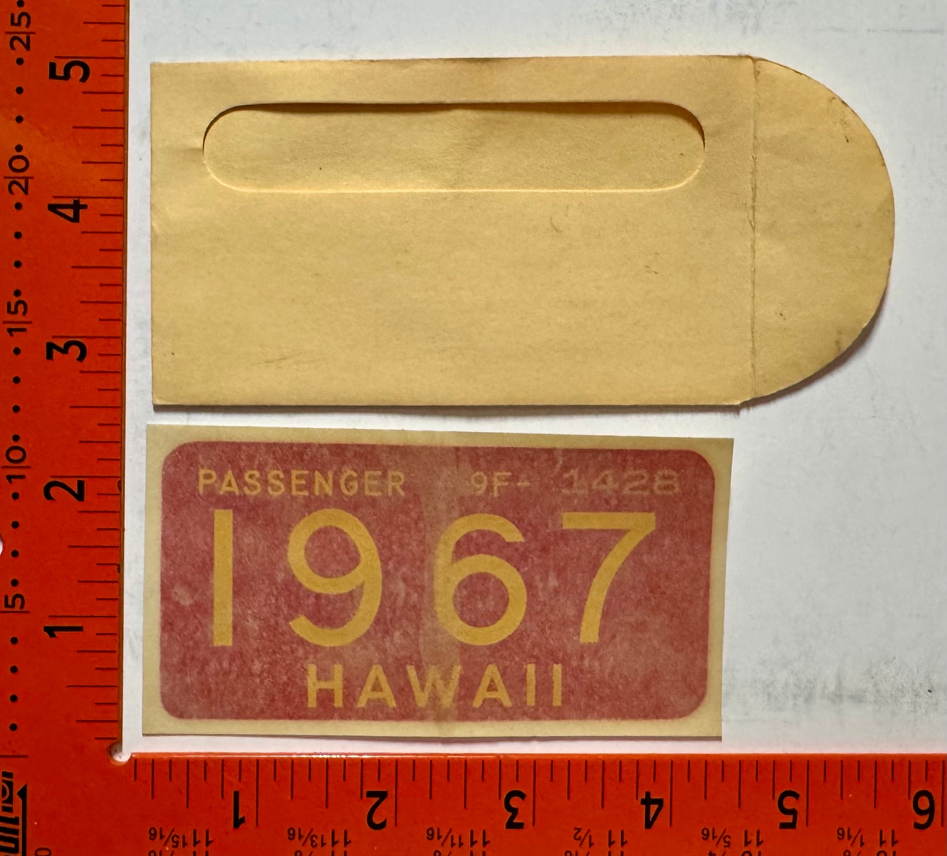 1967 Hawaii #9F-1428 Passenger License Plate Windshield Sticker