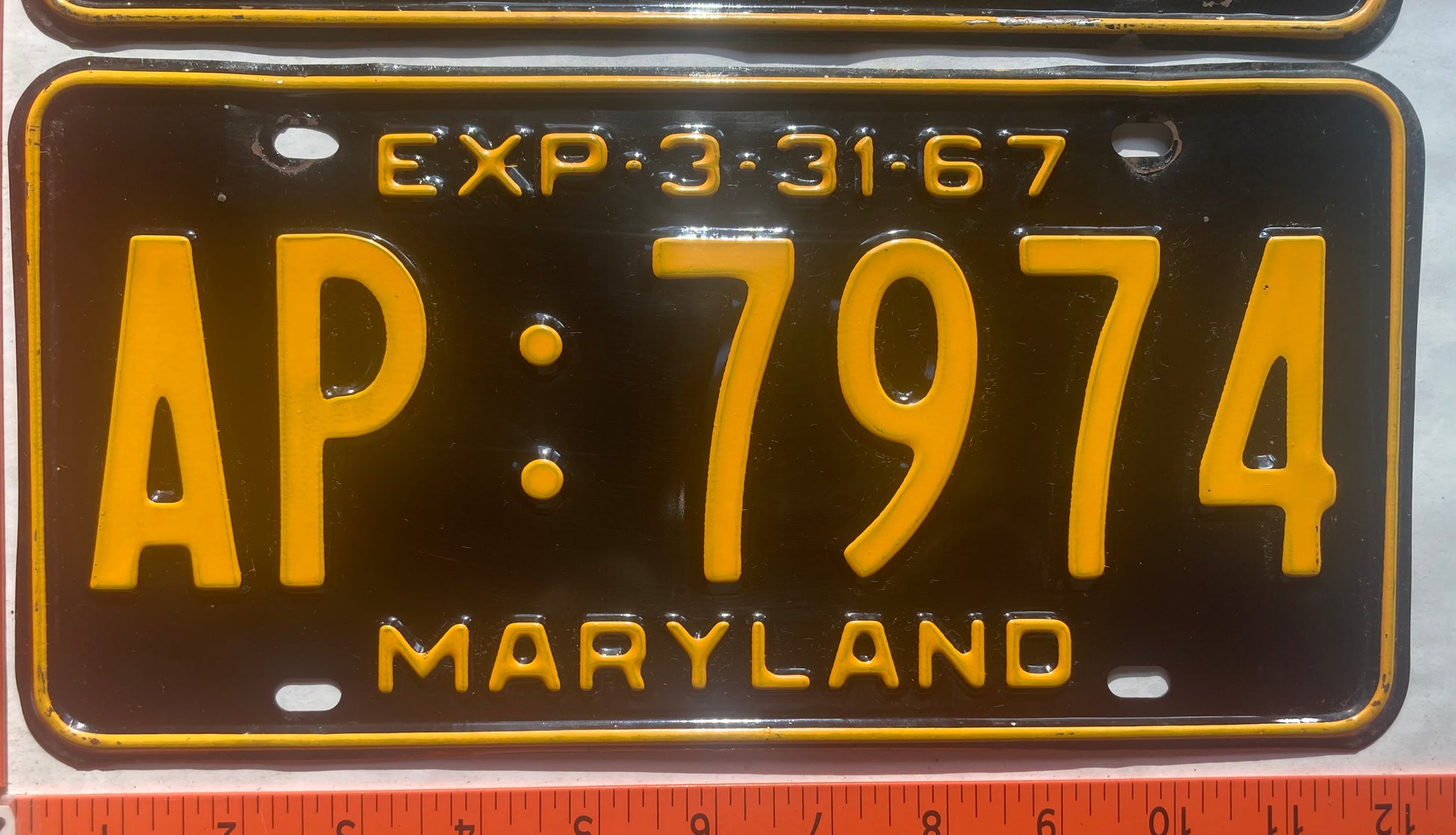1967 Maryland #AP:7974 Passenger License Plate (Pair)