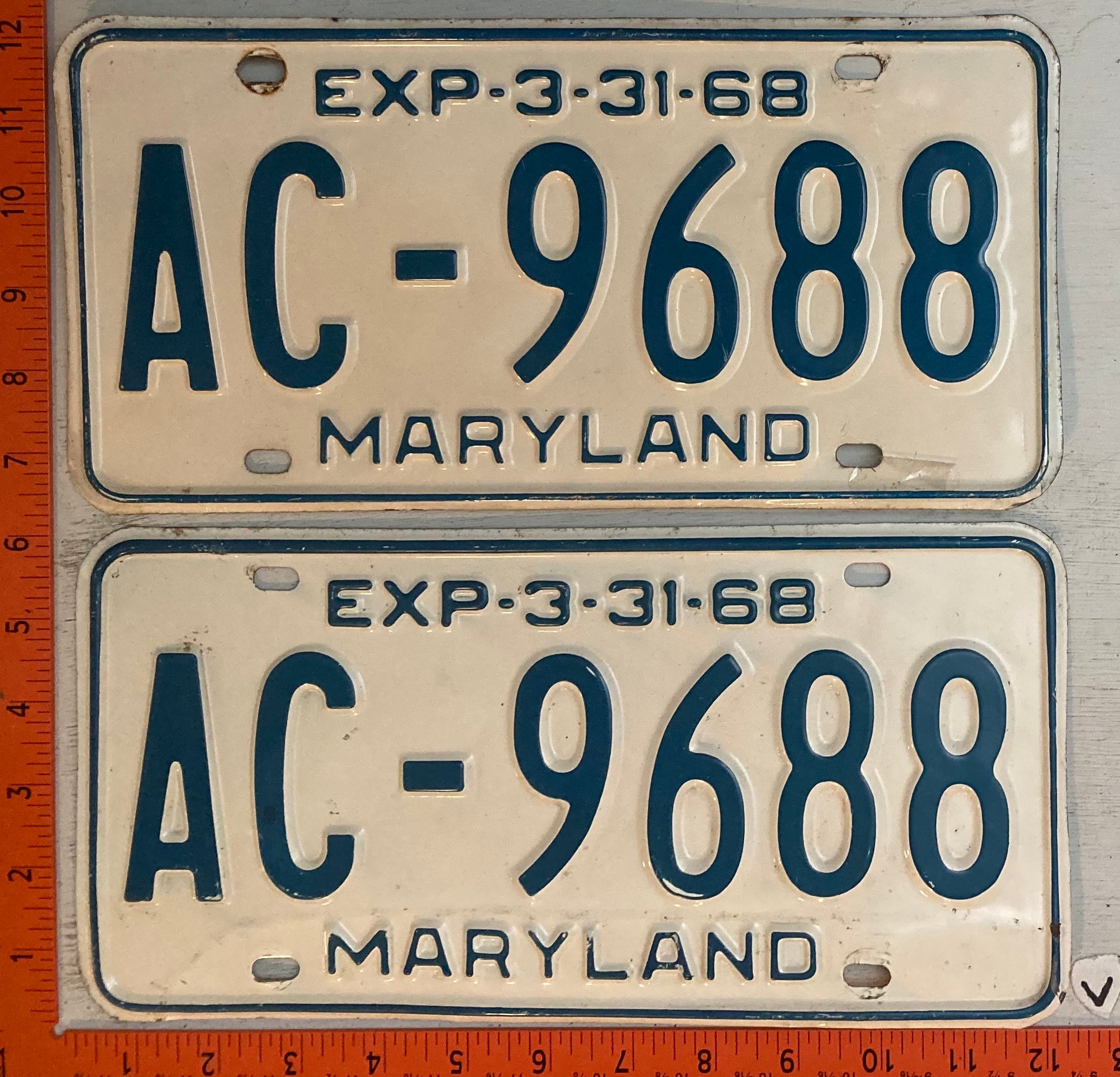 1968 Maryland #AC-9688 Passenger License Plate (Pair)