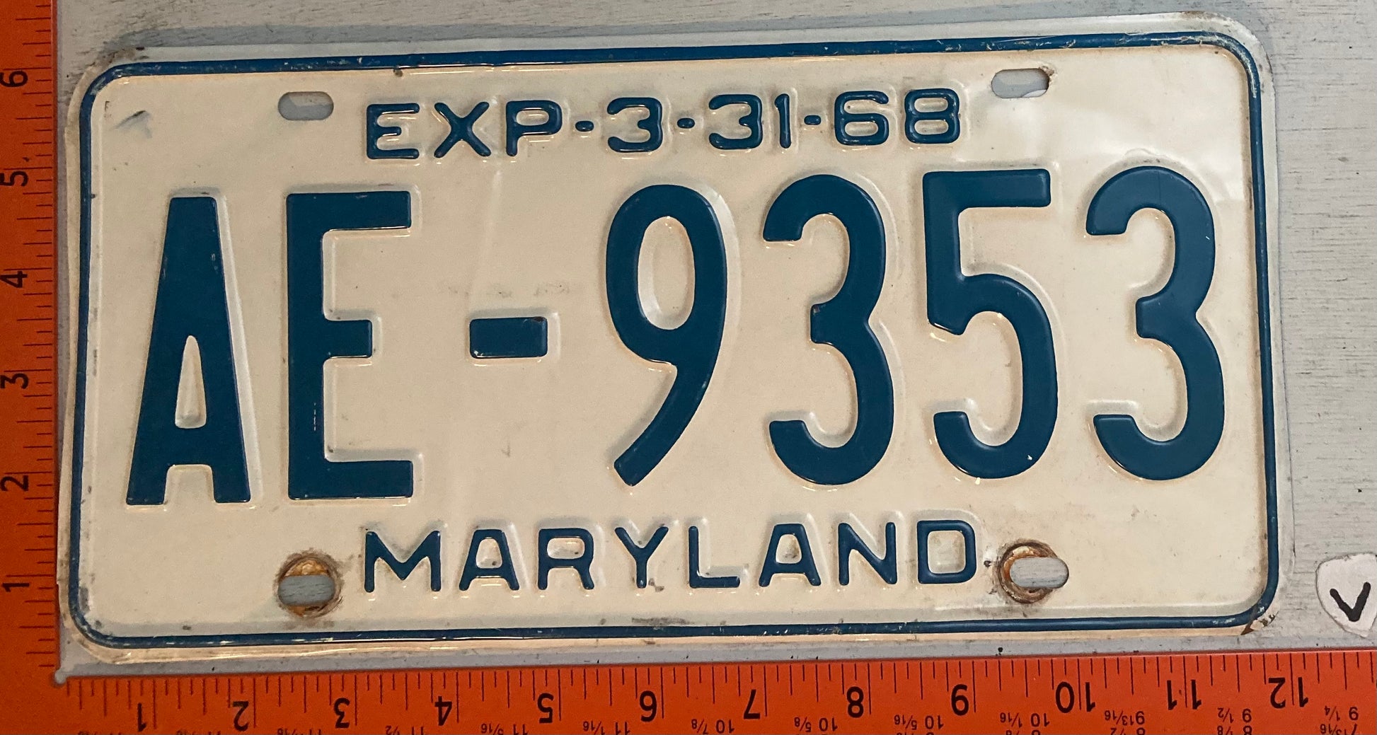 1968 Maryland #AE-9353 Passenger License Plate