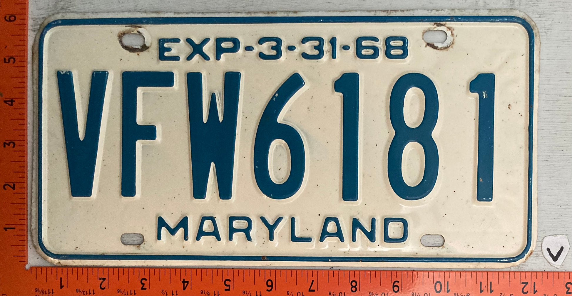 1968 Maryland #VFW6181 VFW Passenger License Plate