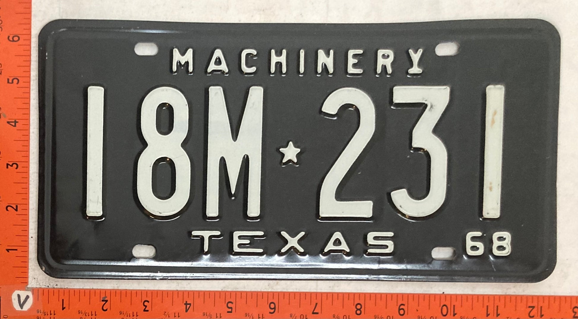 1968 Texas #18M 231 Machinery License Plate