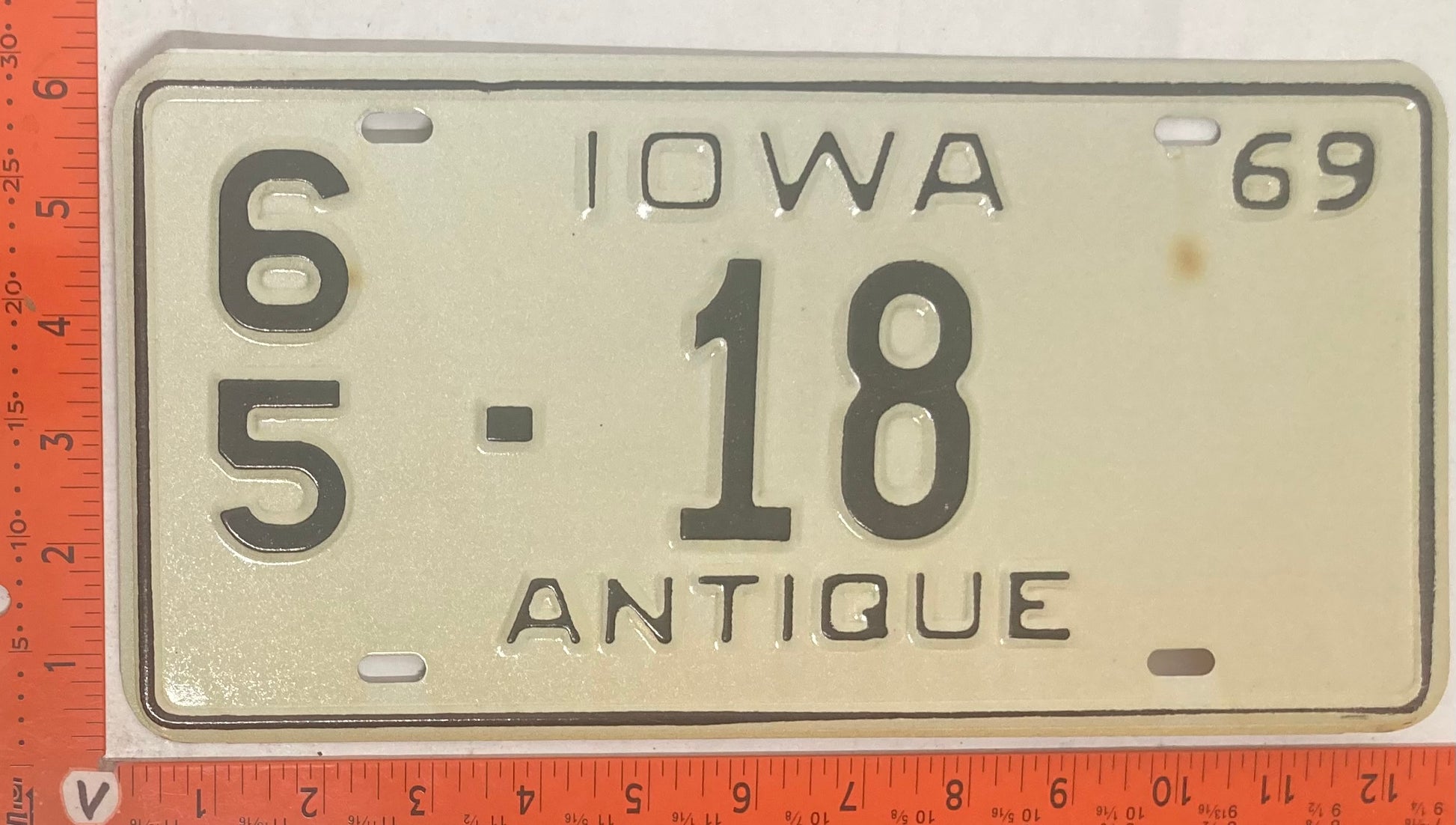 1969 Iowa #6/5 18 Passenger License Plate (Antique Auto)