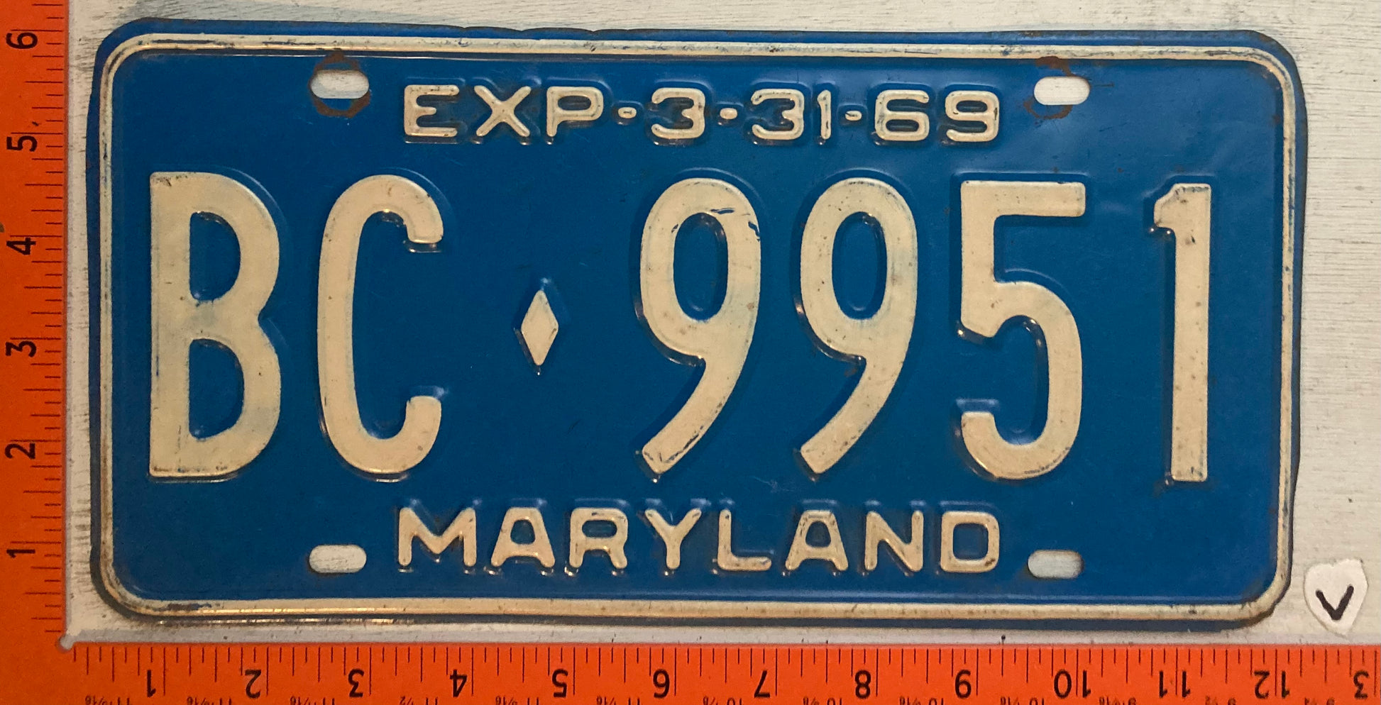 1969 Maryland #BC-9951 Passenger License Plate