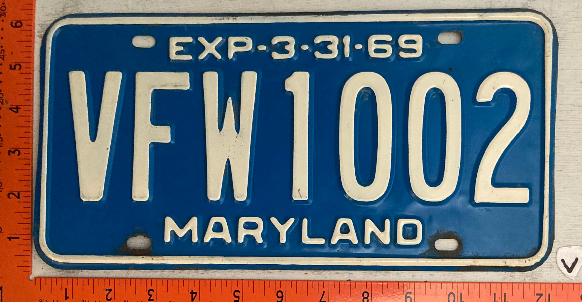 1969 Maryland #VFW1002 VFW Passenger License Plate