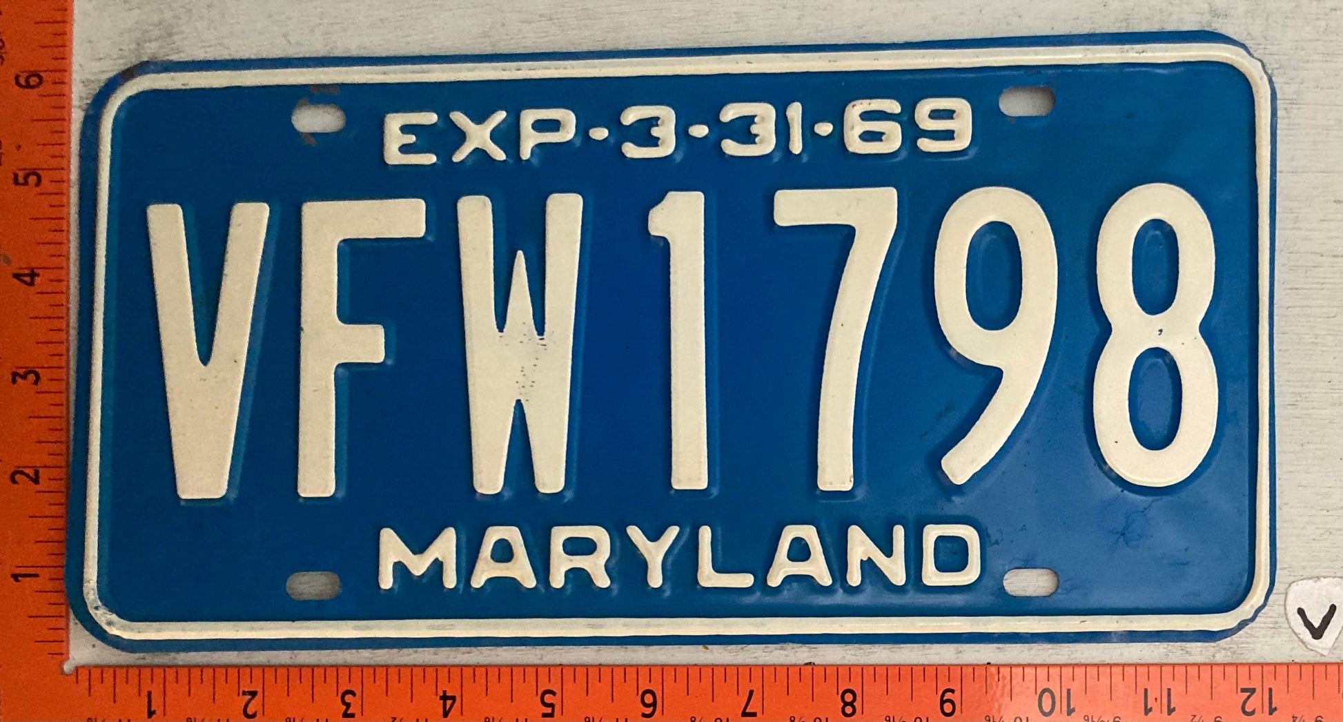 1969 Maryland #VFW1798 VFW Passenger License Plate
