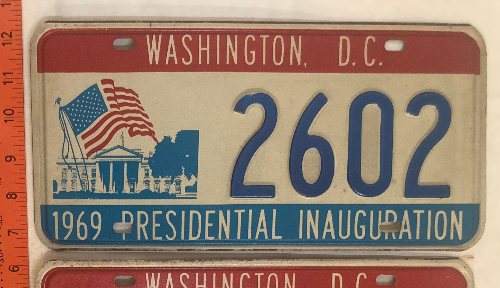 1969 Washington, DC #2602 Presidential Inaugural Passenger License Plate (Pair)