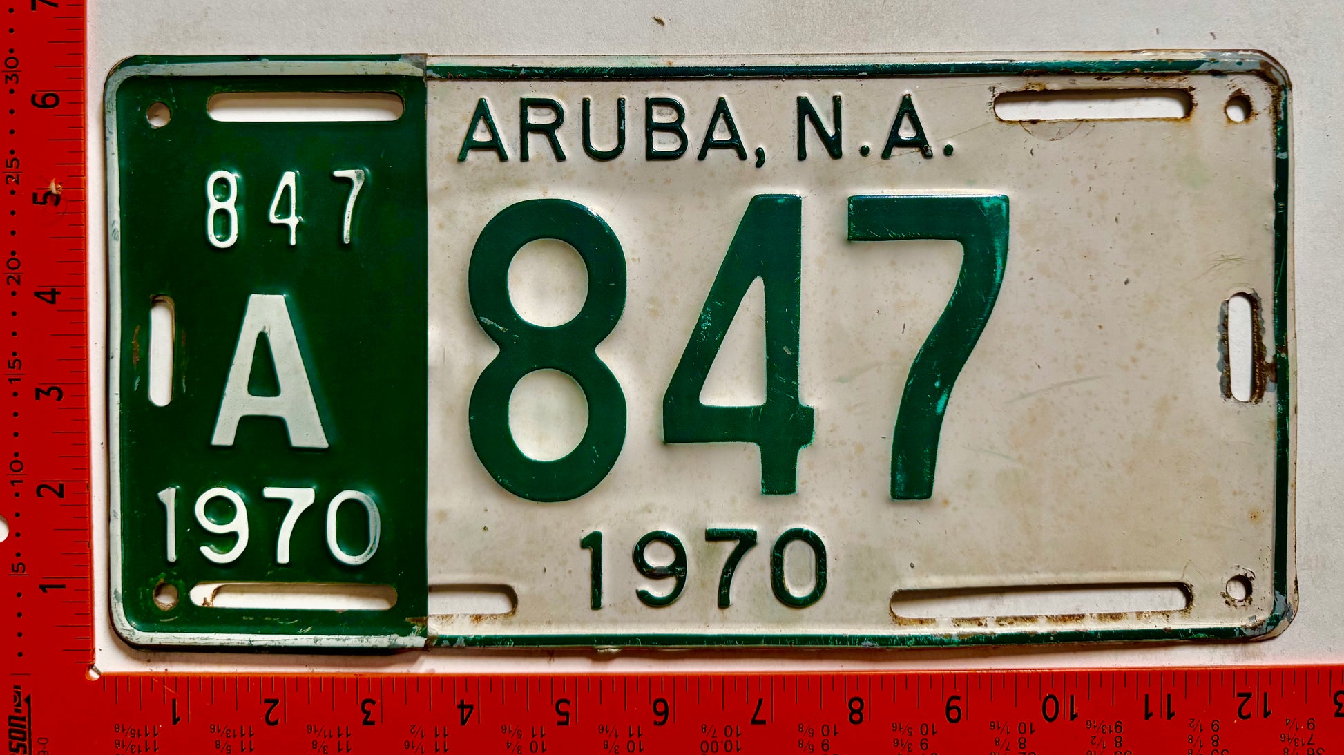 1970 Aruba #A-847 Passenger License Plate