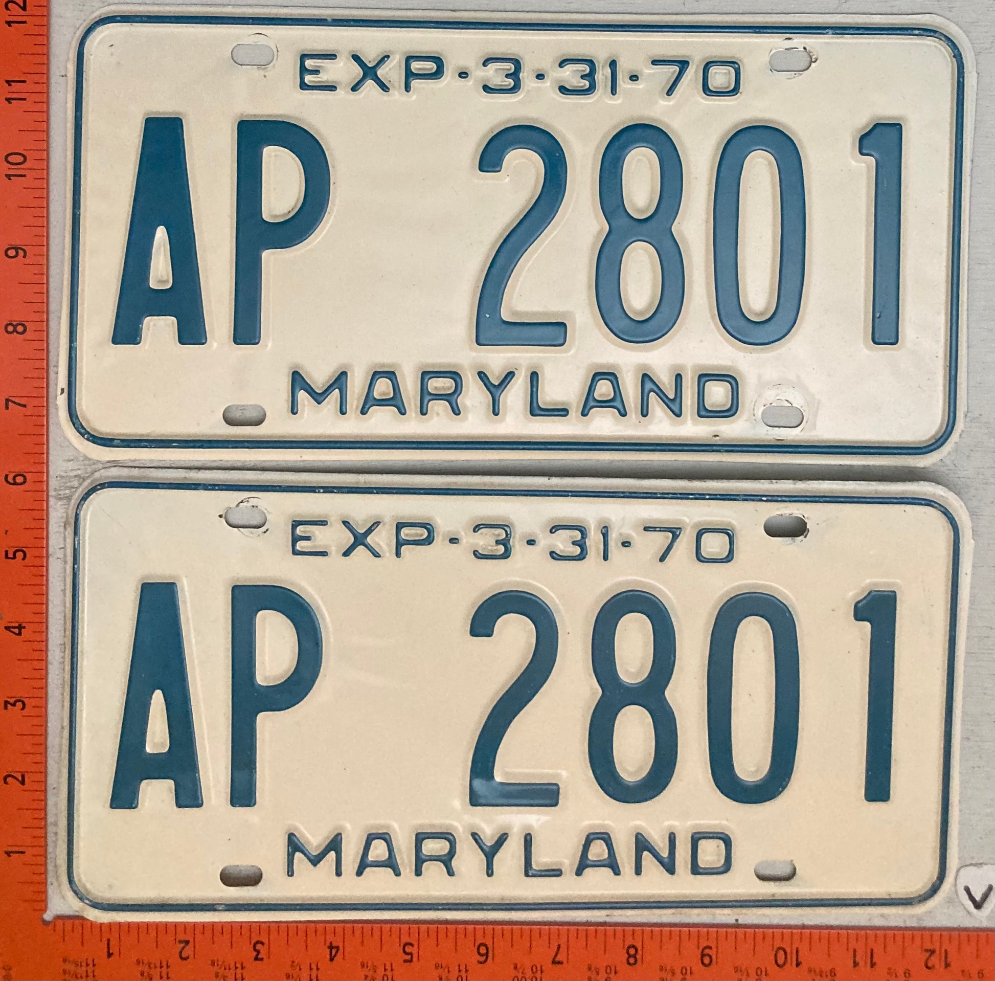 1970 Maryland #AP 2801 Passenger License Plate (Pair)
