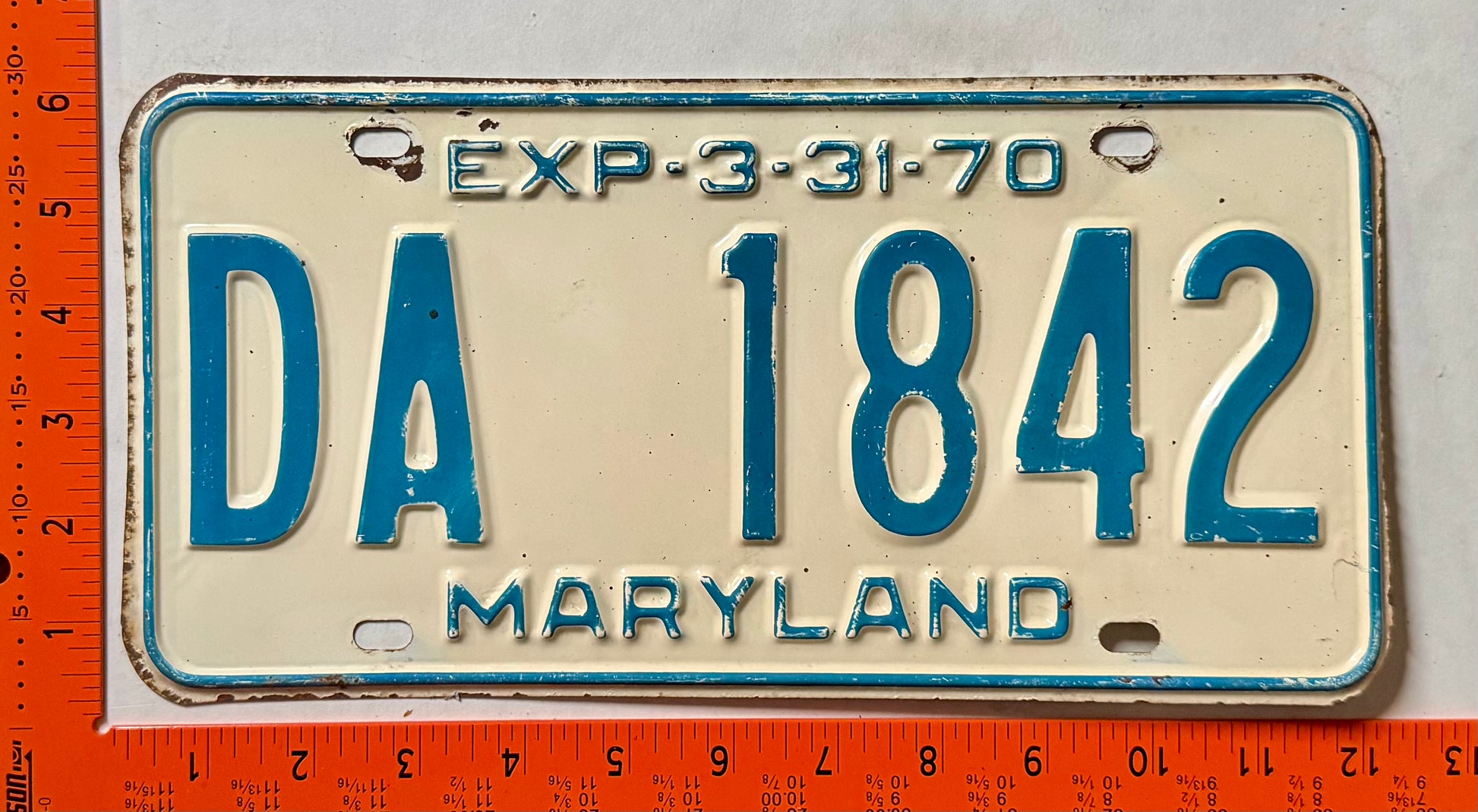 1970 Maryland #DA 1842 Passenger License Plate