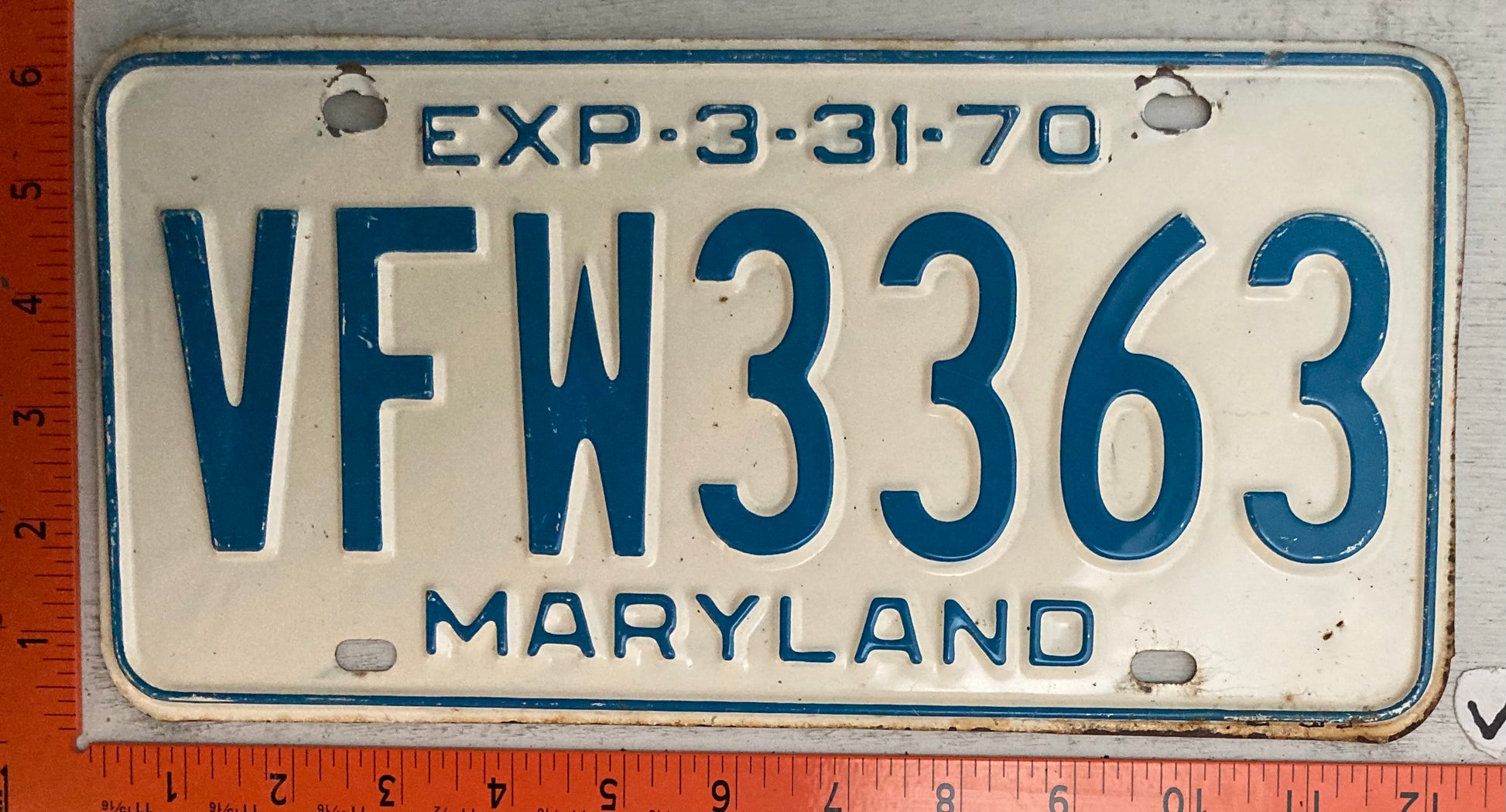 1970 Maryland #VFW3363 VFW Passenger License Plate