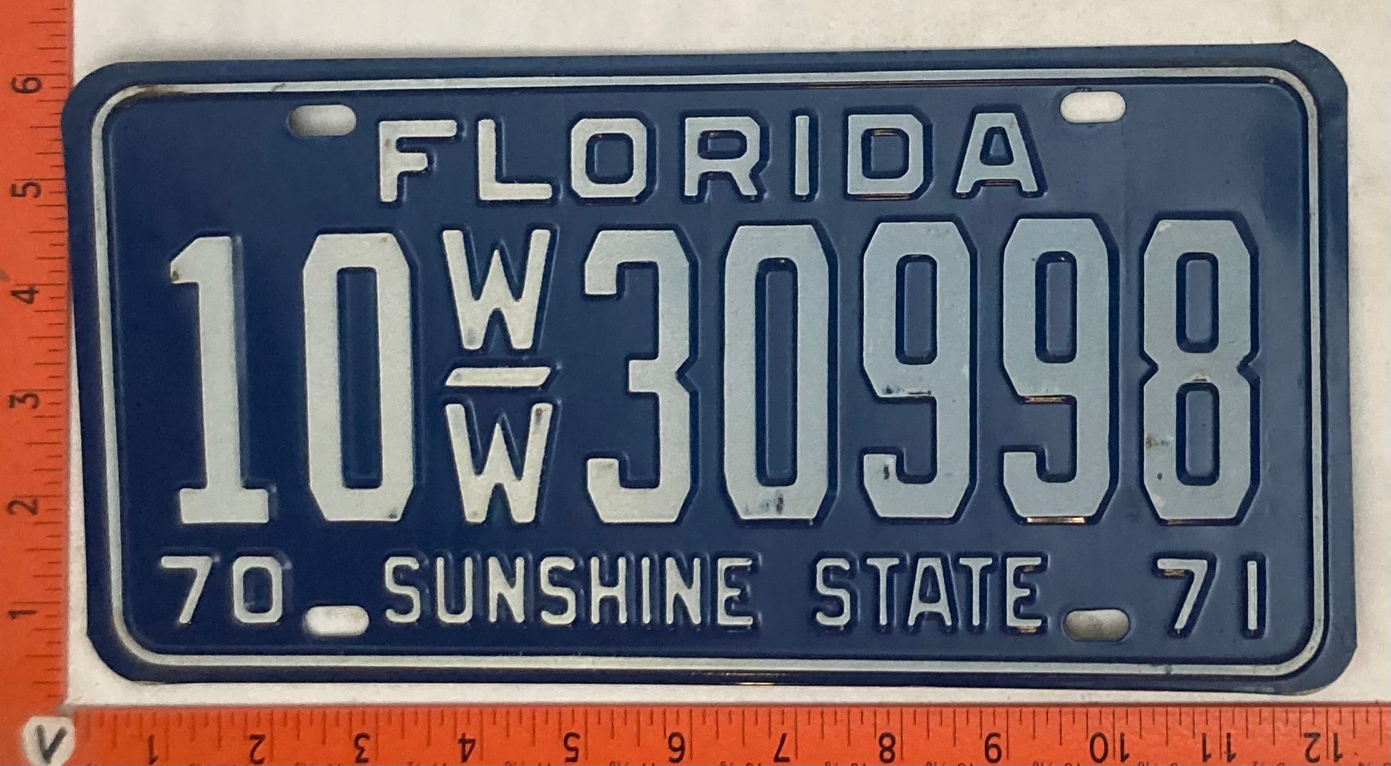 1971 Florida #10 W/W 30998 Passenger License Plate