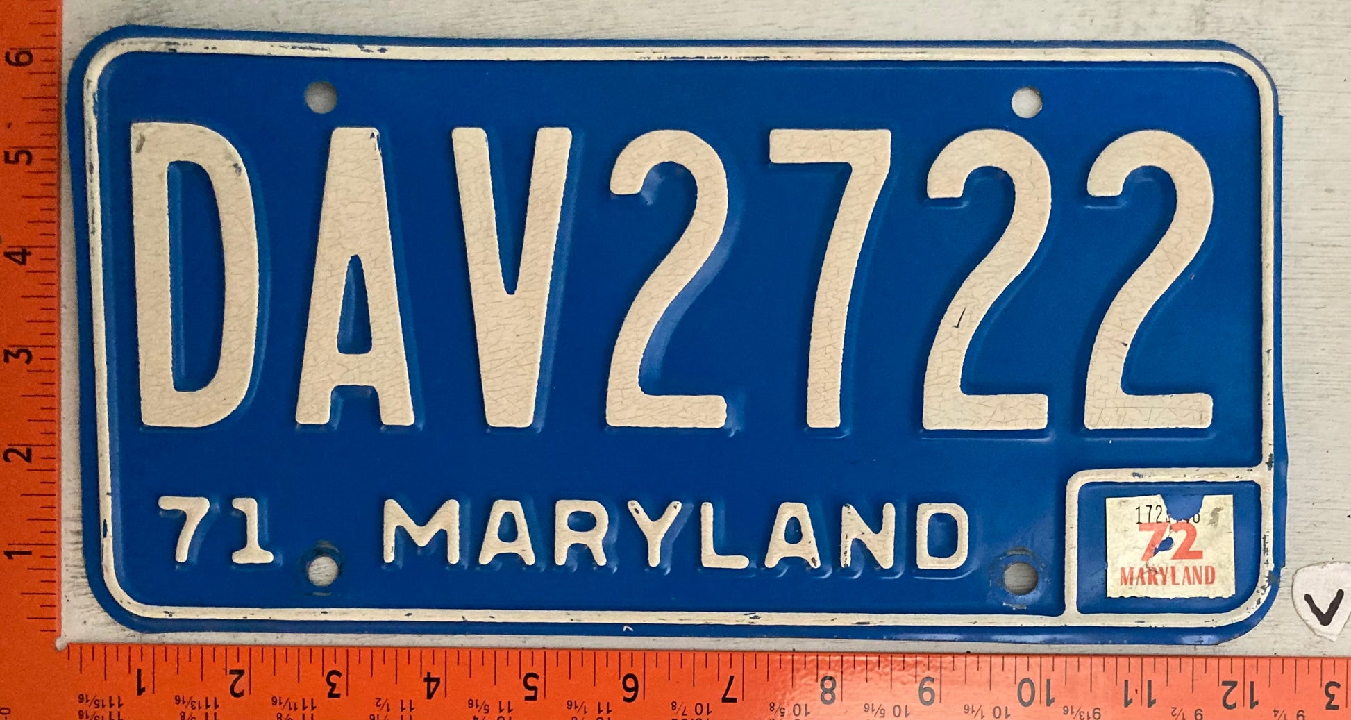 1972 Maryland #DAV2722 Disabled Vet License Plate
