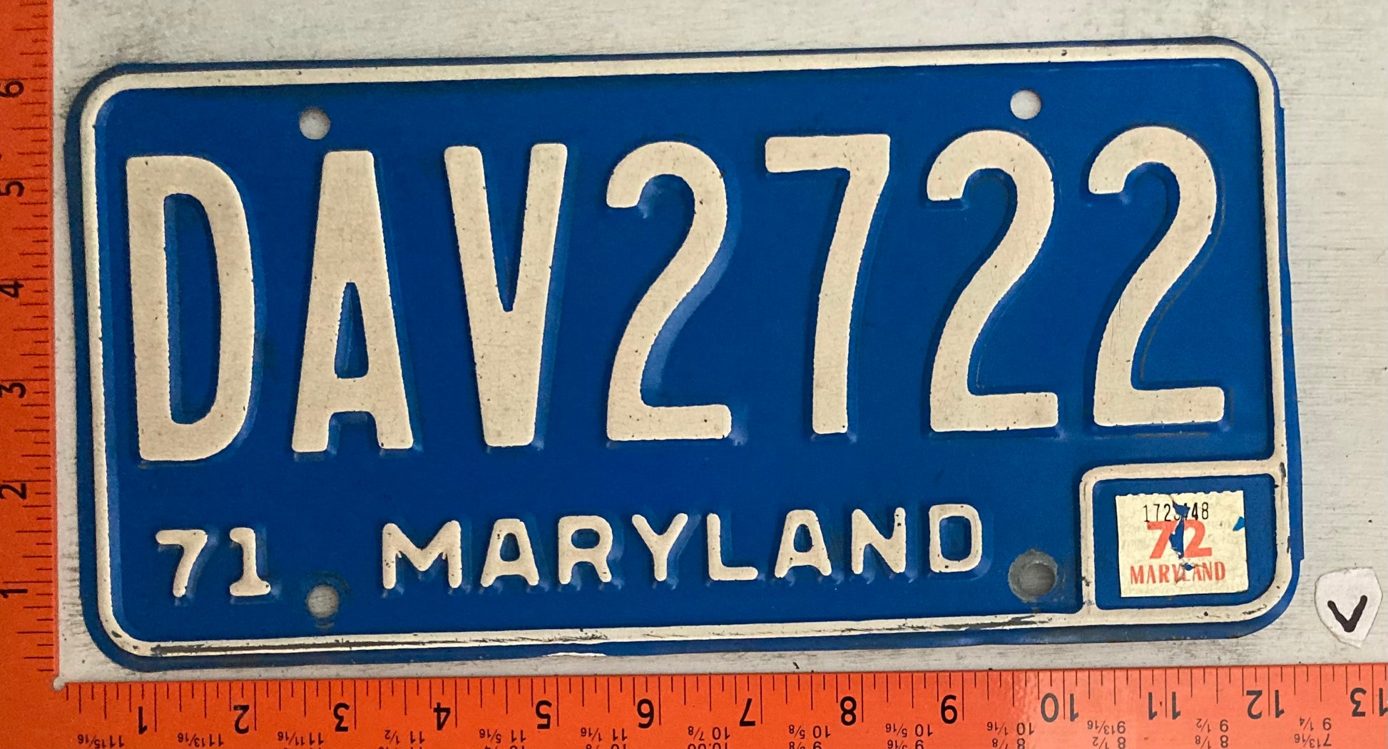 1972 Maryland #DAV2722 Disabled Vet License Plate