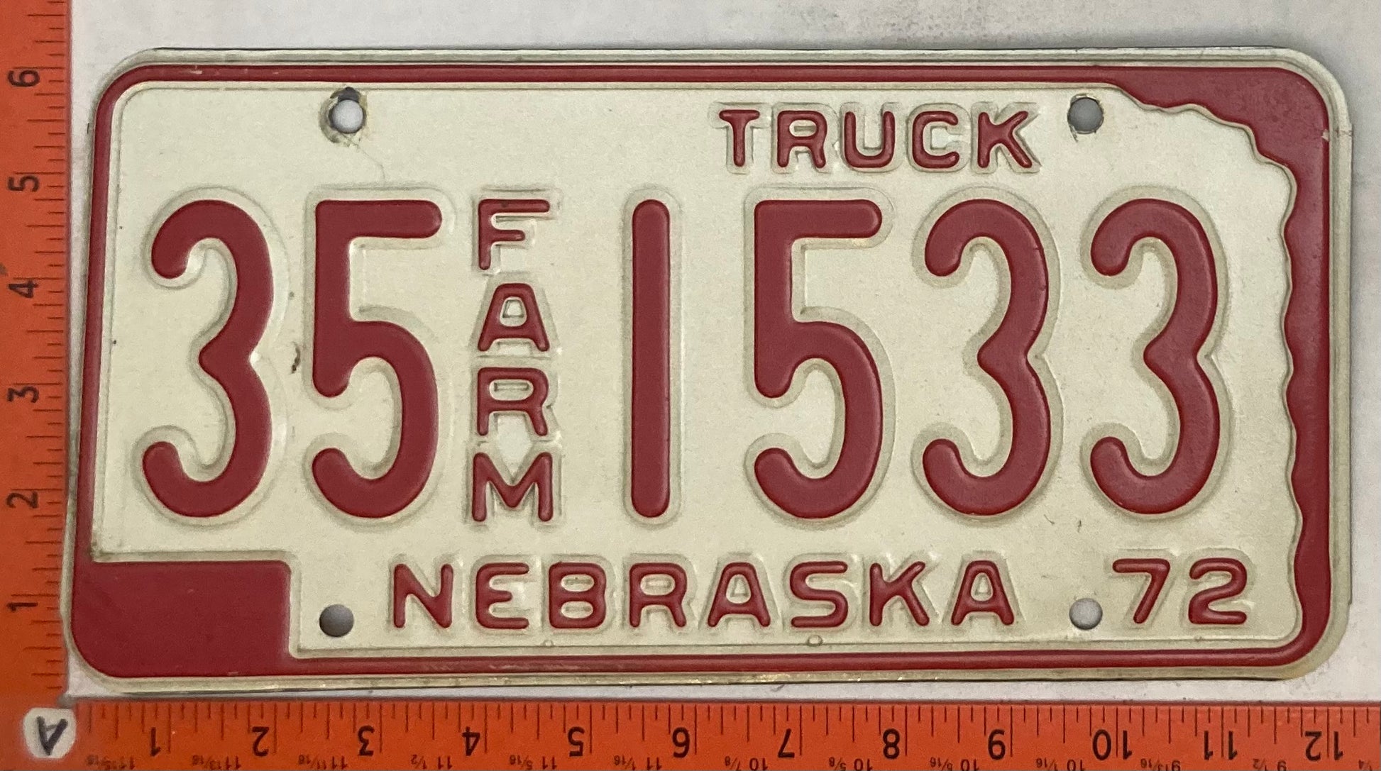 1972 Nebraska #35 1533 Farm Truck License Plate