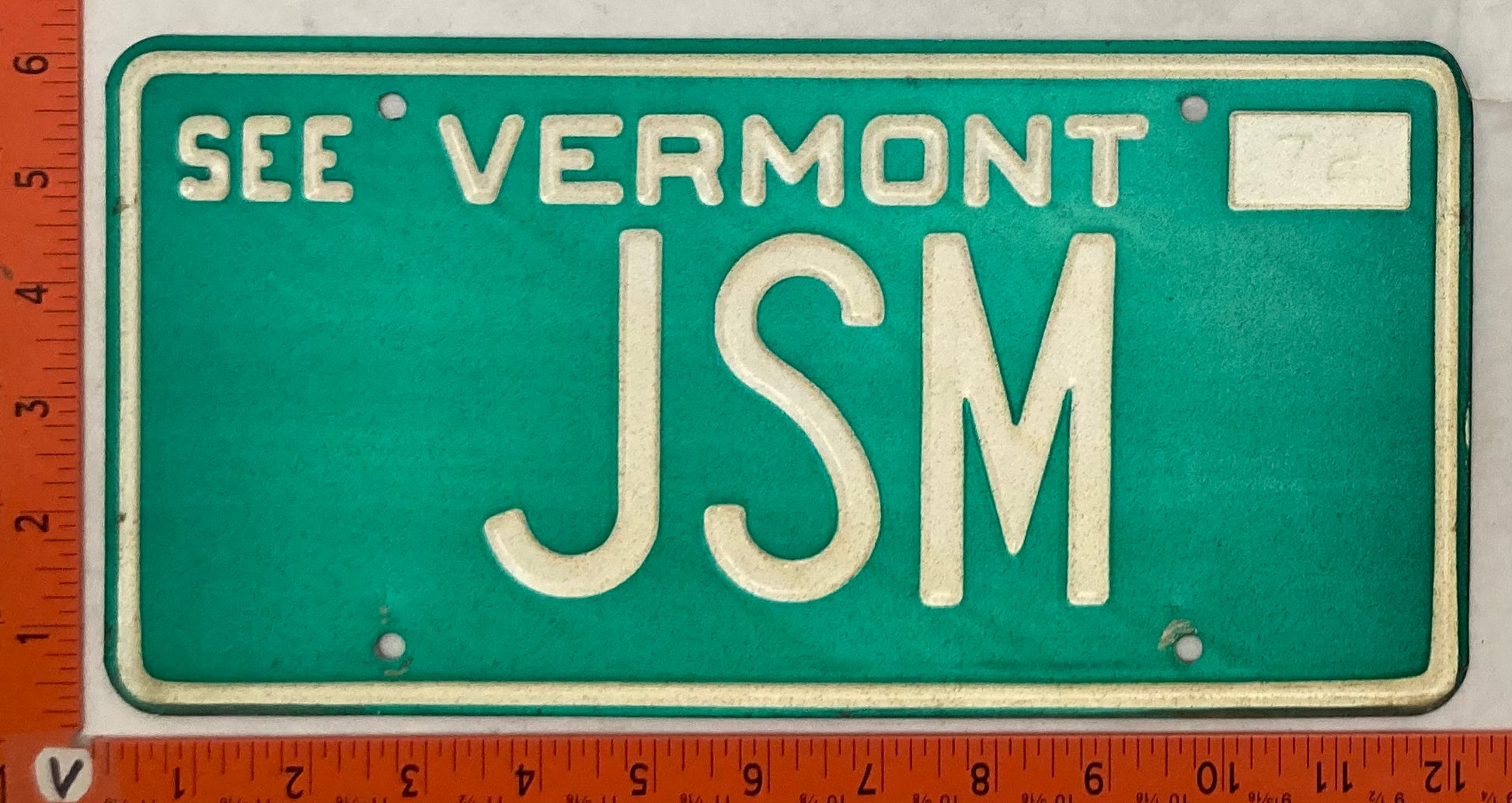 1972 Vermont #JSM Passenger License Plate (Vanity)