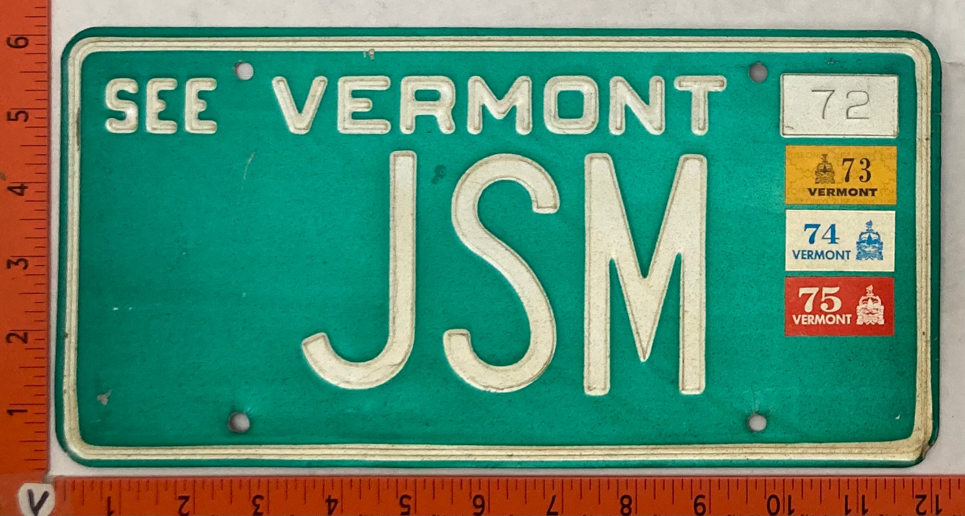 1975 Vermont #JSM Passenger License Plate (Vanity)