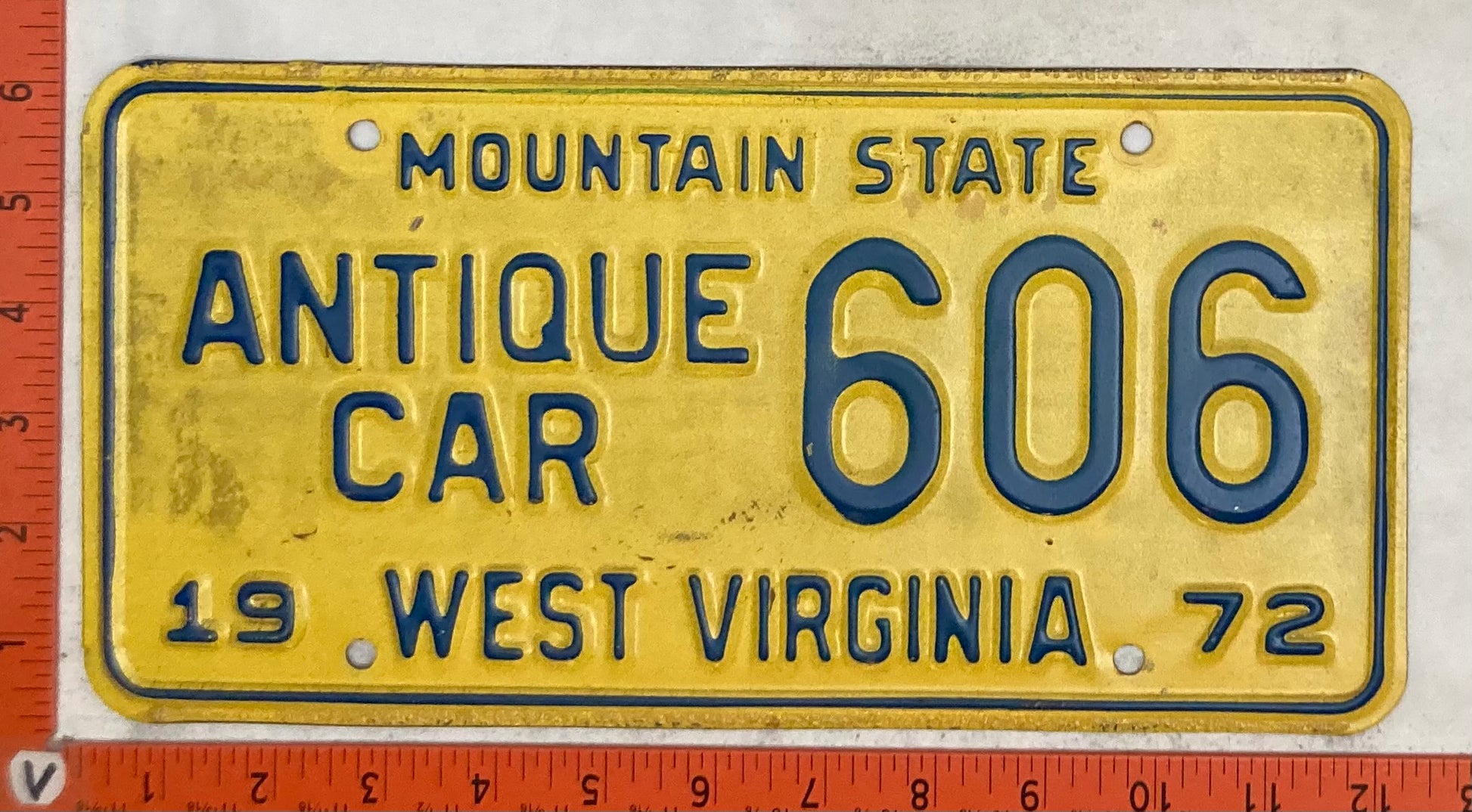 1972 West Virginia #606 Antique Car Passenger License Plate
