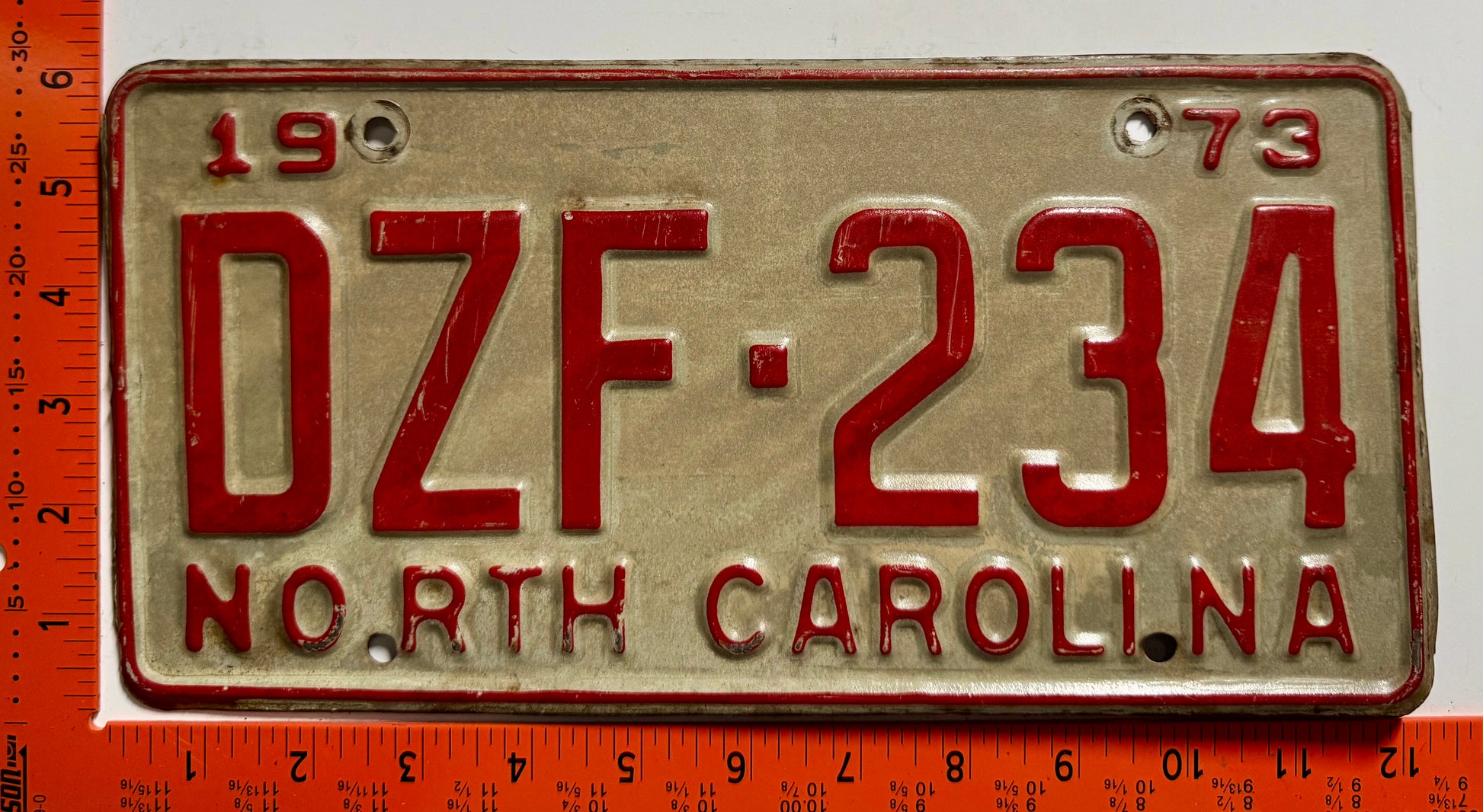 1973 North Carolina #DZF-234 Passenger License Plate