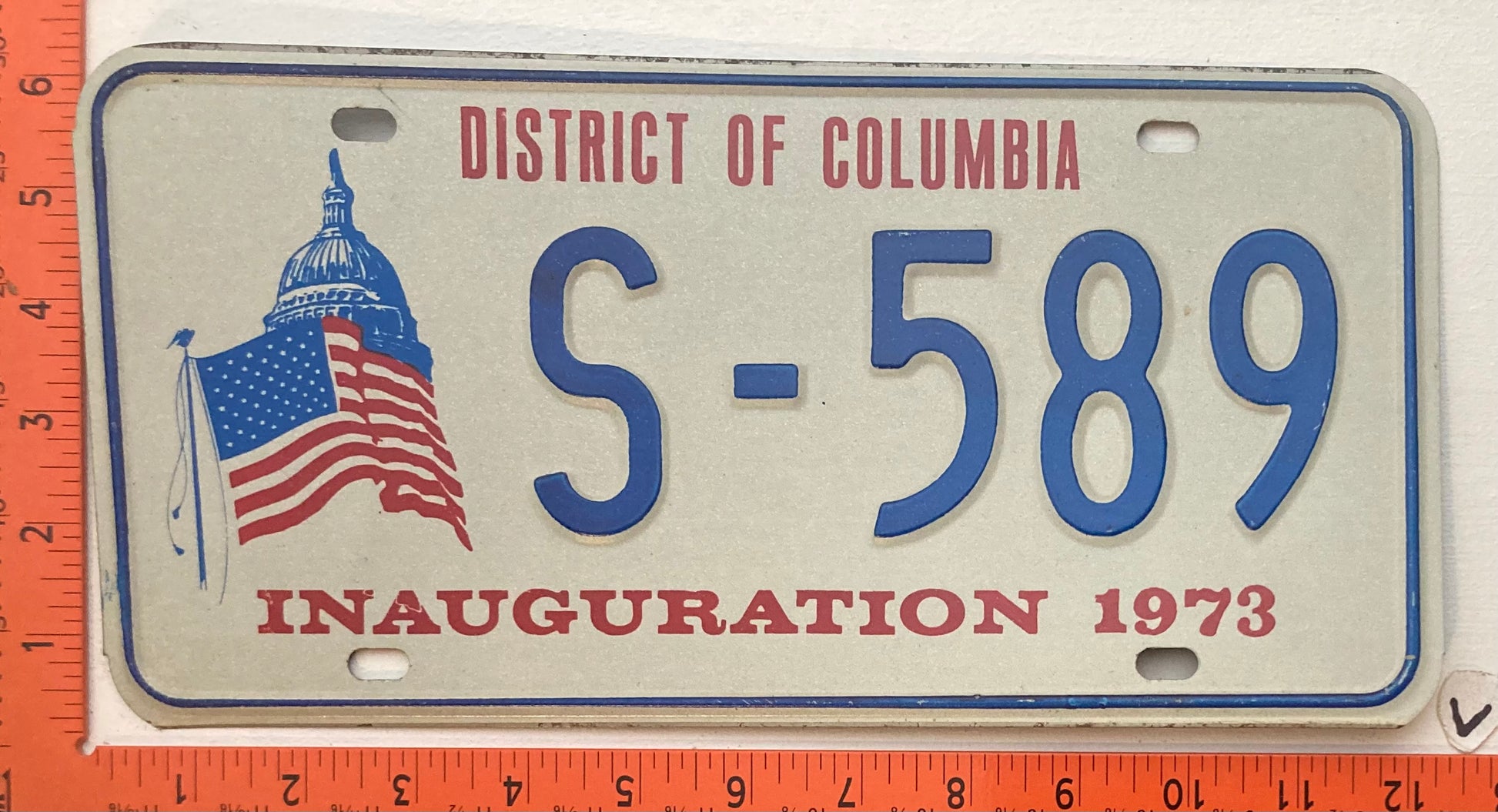 1973 Washington, DC #S-589 Presidential Inaugural Passenger License Plate