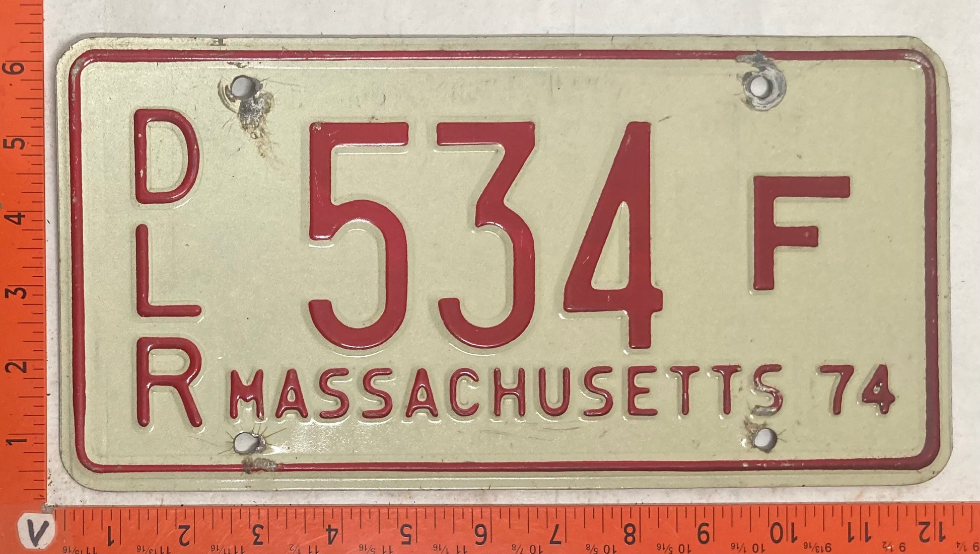 1974 Massachusetts #D/L/R 534 F Dealer License Plate