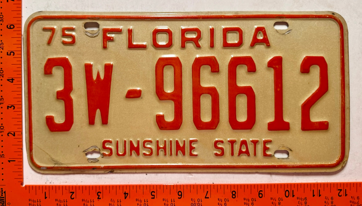 1975 Florida #3W-96612 Passenger License Plate