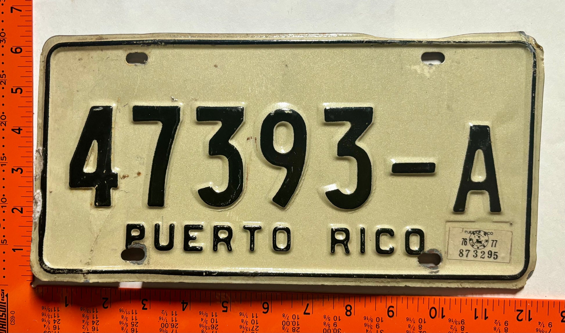 1976/1977 Puerto Rico #47393-A Trailer License Plate