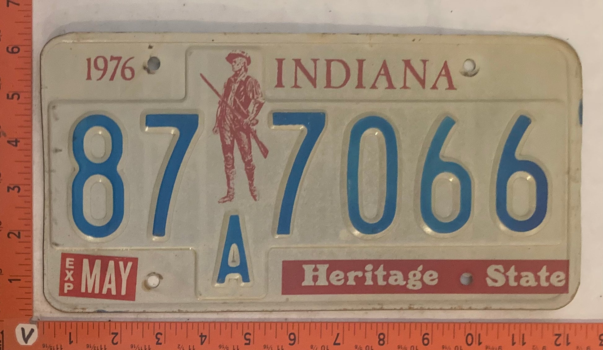 1976 Indiana #87A7066 Passenger License Plate
