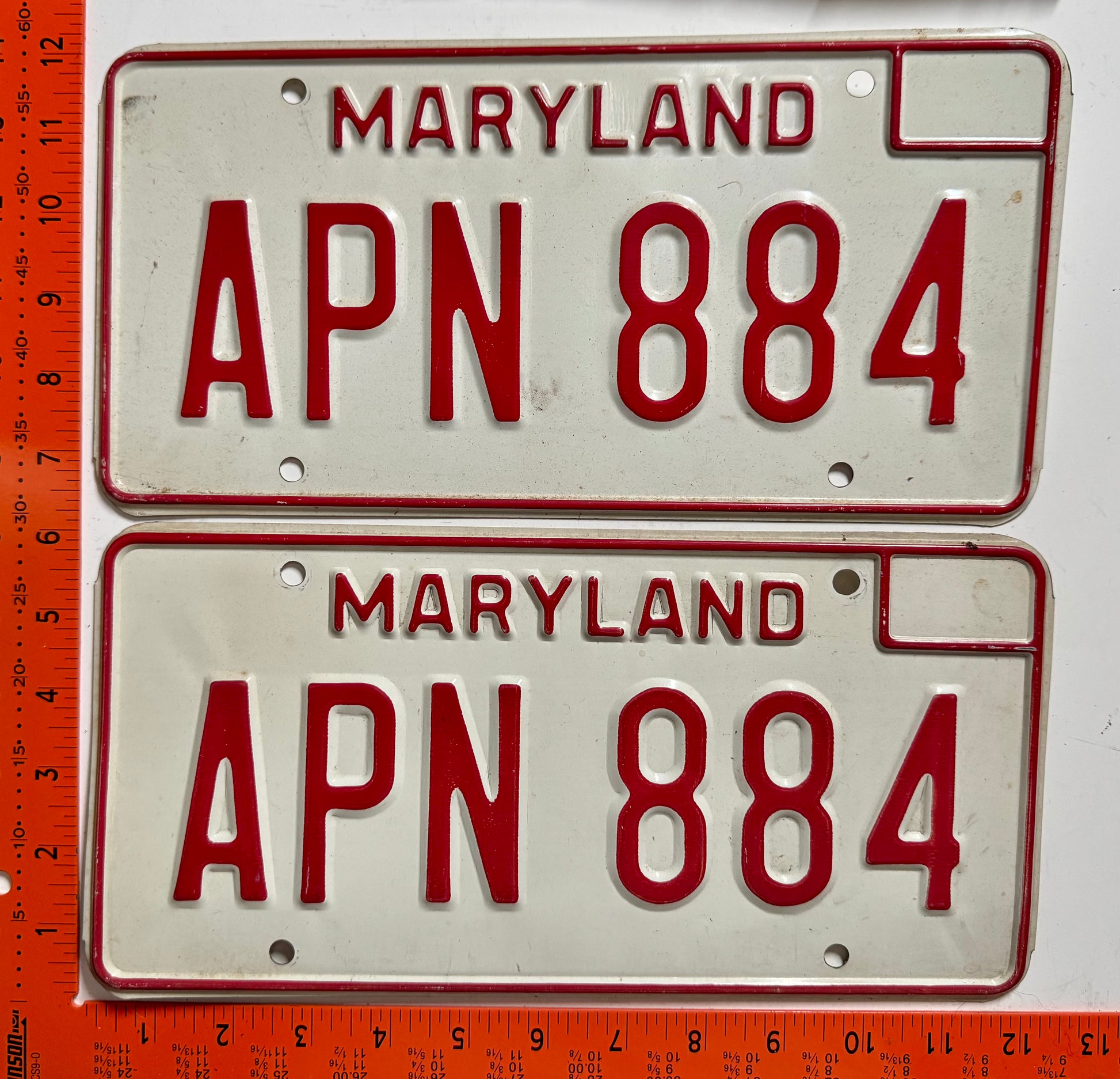 1976 Maryland #APN 884 Passenger License Plate Pair