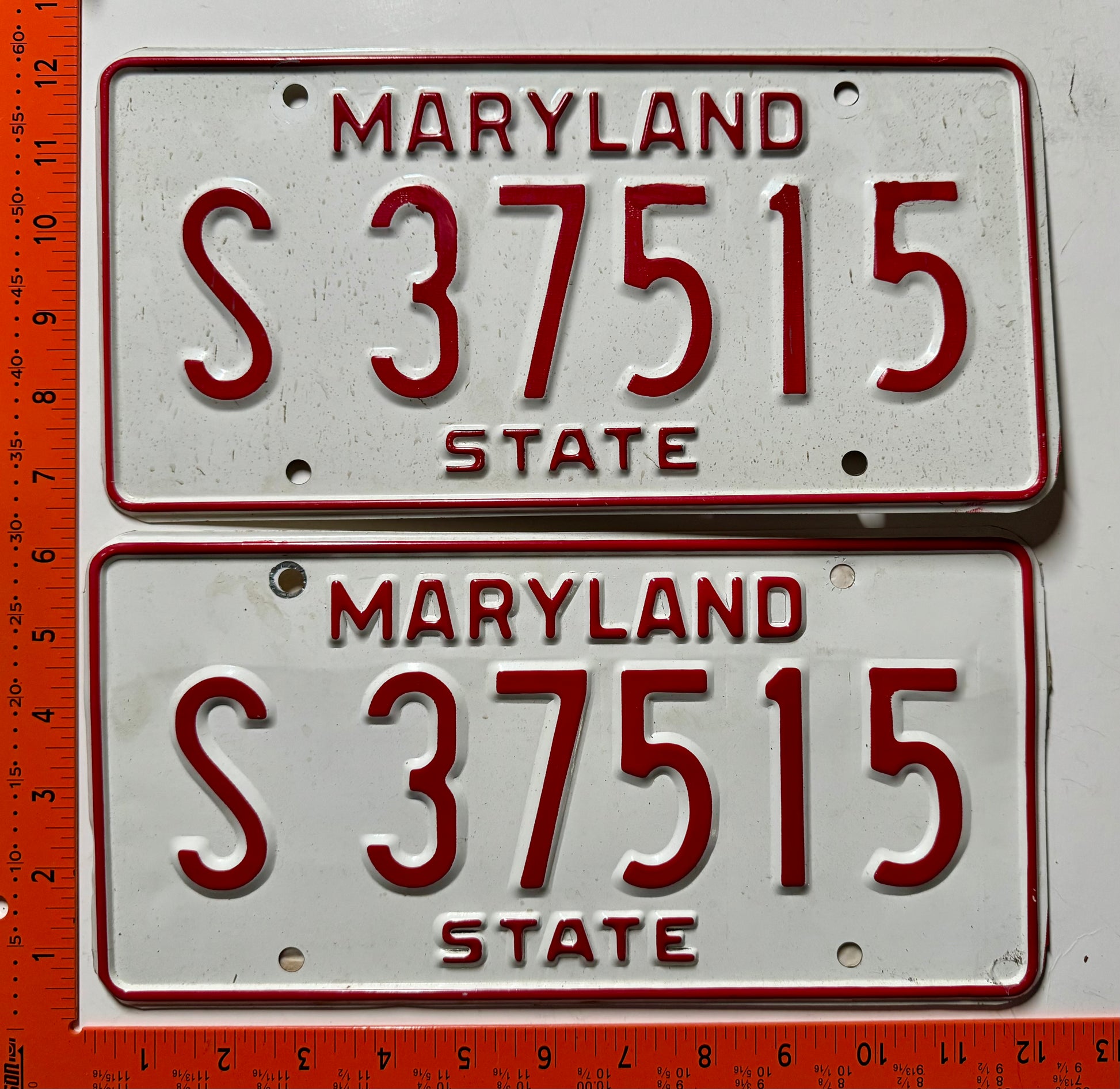 1976 Maryland #S 37515 State Vehicle License Plate (Pair)