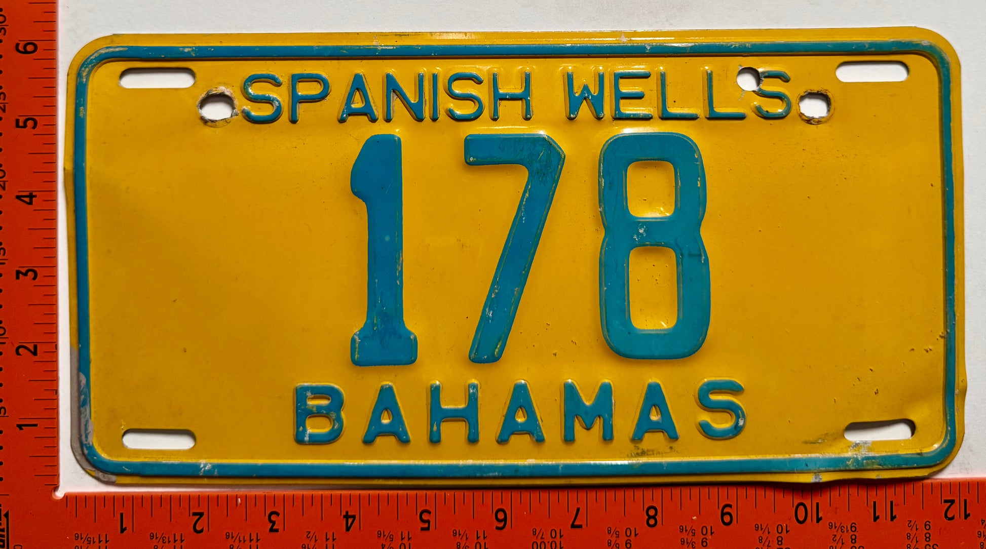 1976 Spanish Wells, Bahamas #178 Passenger License Plate