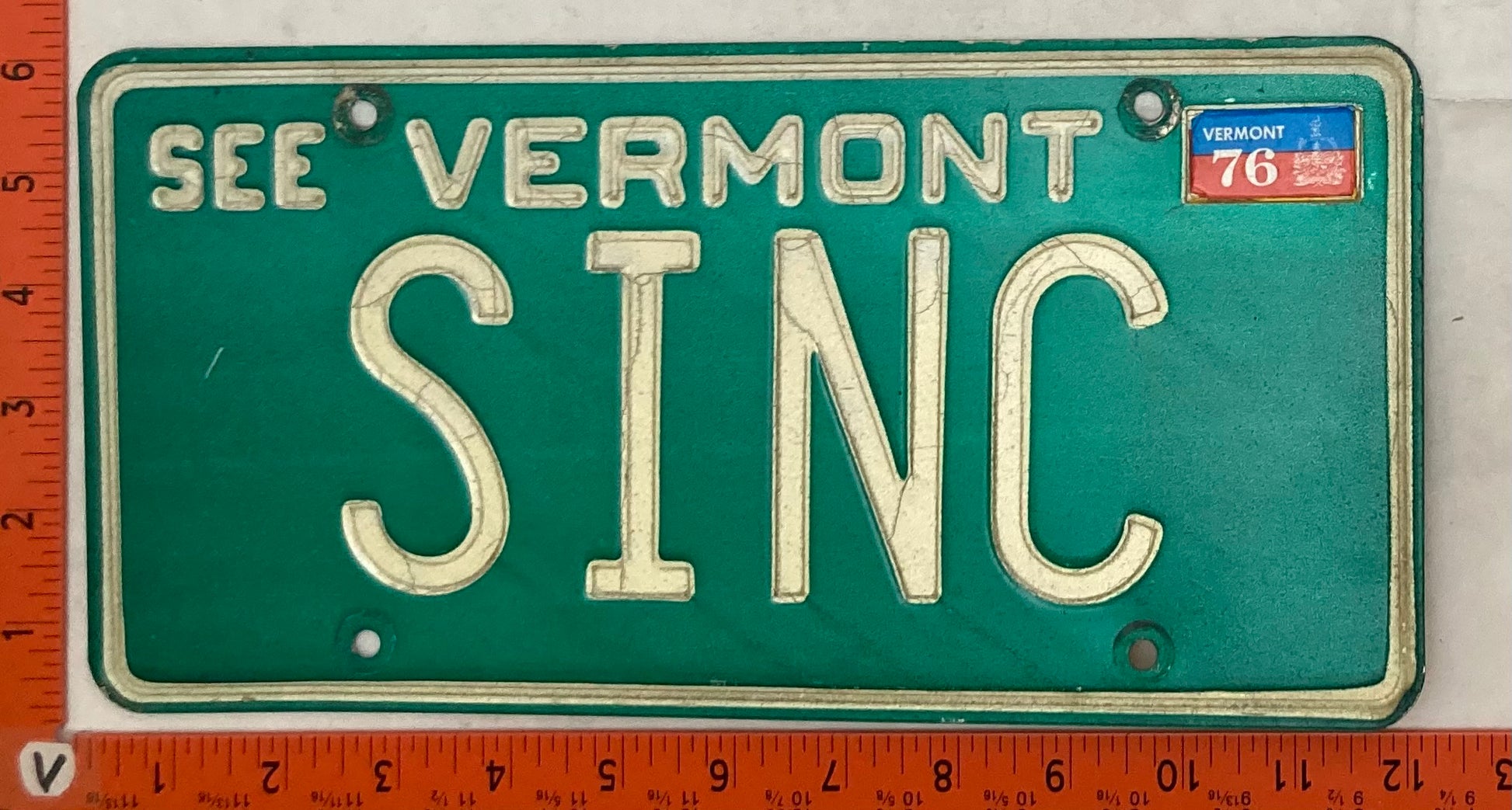 1976 Vermont #SINC Passenger License Plate (Vanity)