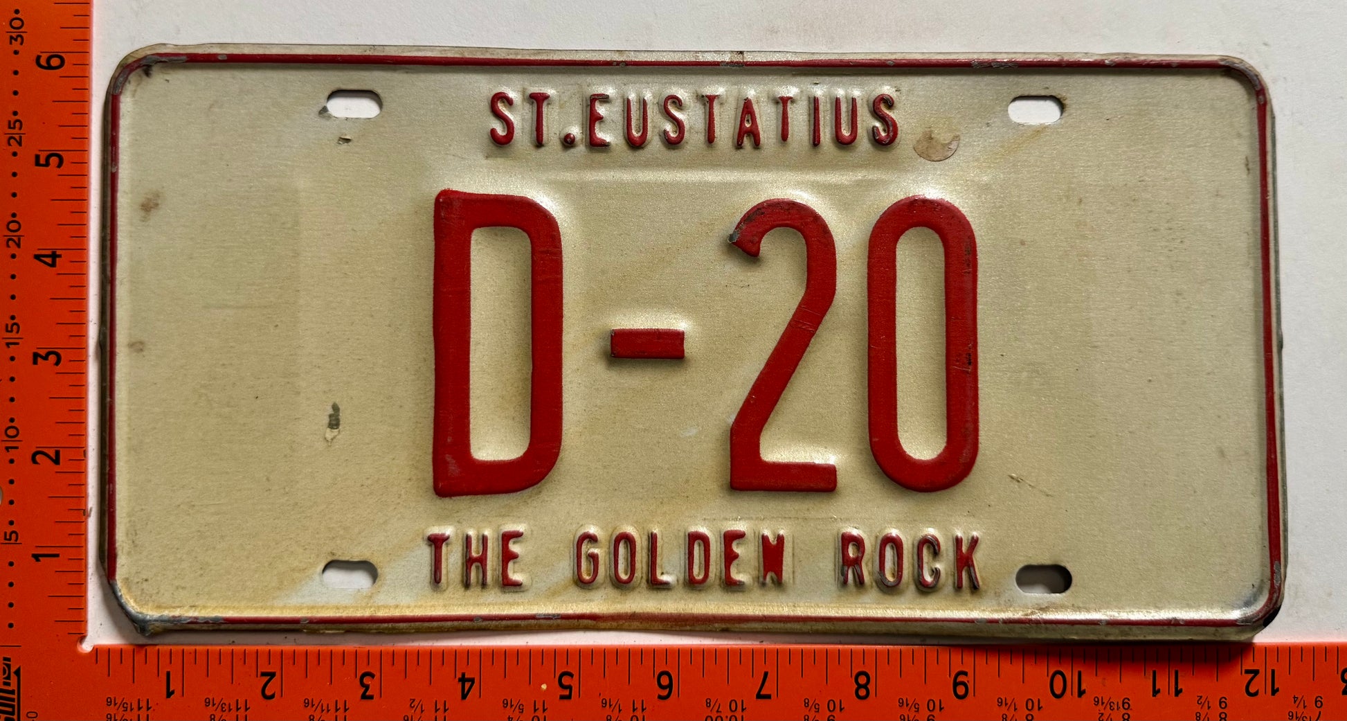 1977 base St Eustatius #D-20 Government License Plate