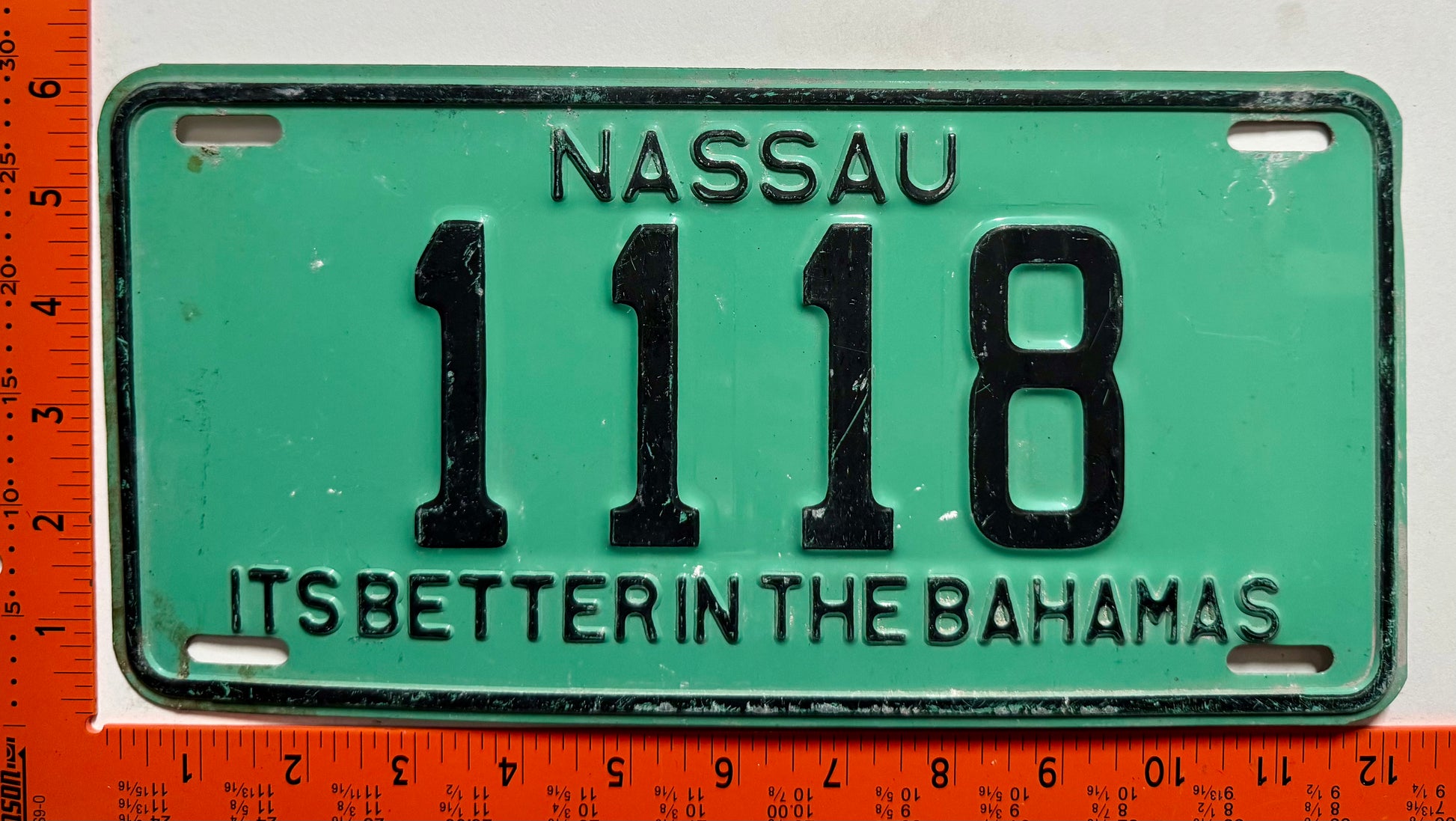 1977 Nassau, Bahamas #1118 Passenger License Plate