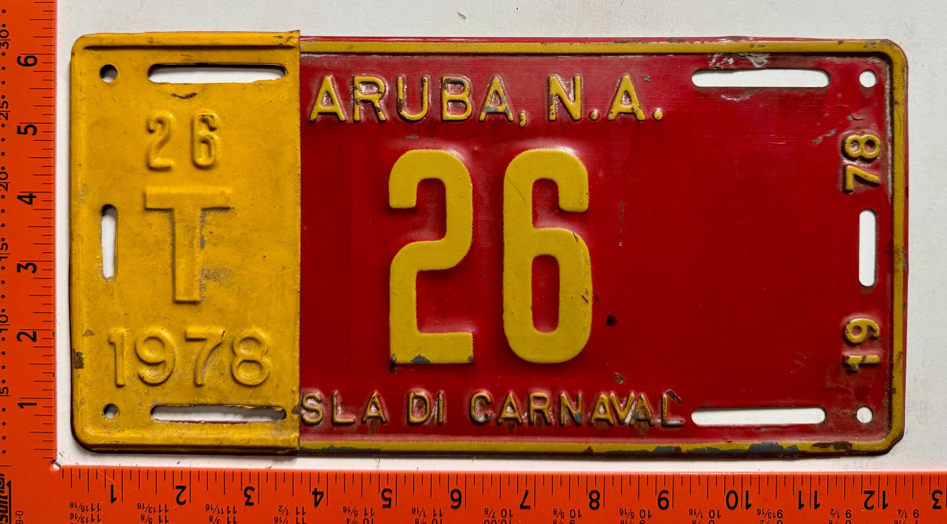 1978 Aruba #T-26 Tourist Vehicle License Plate