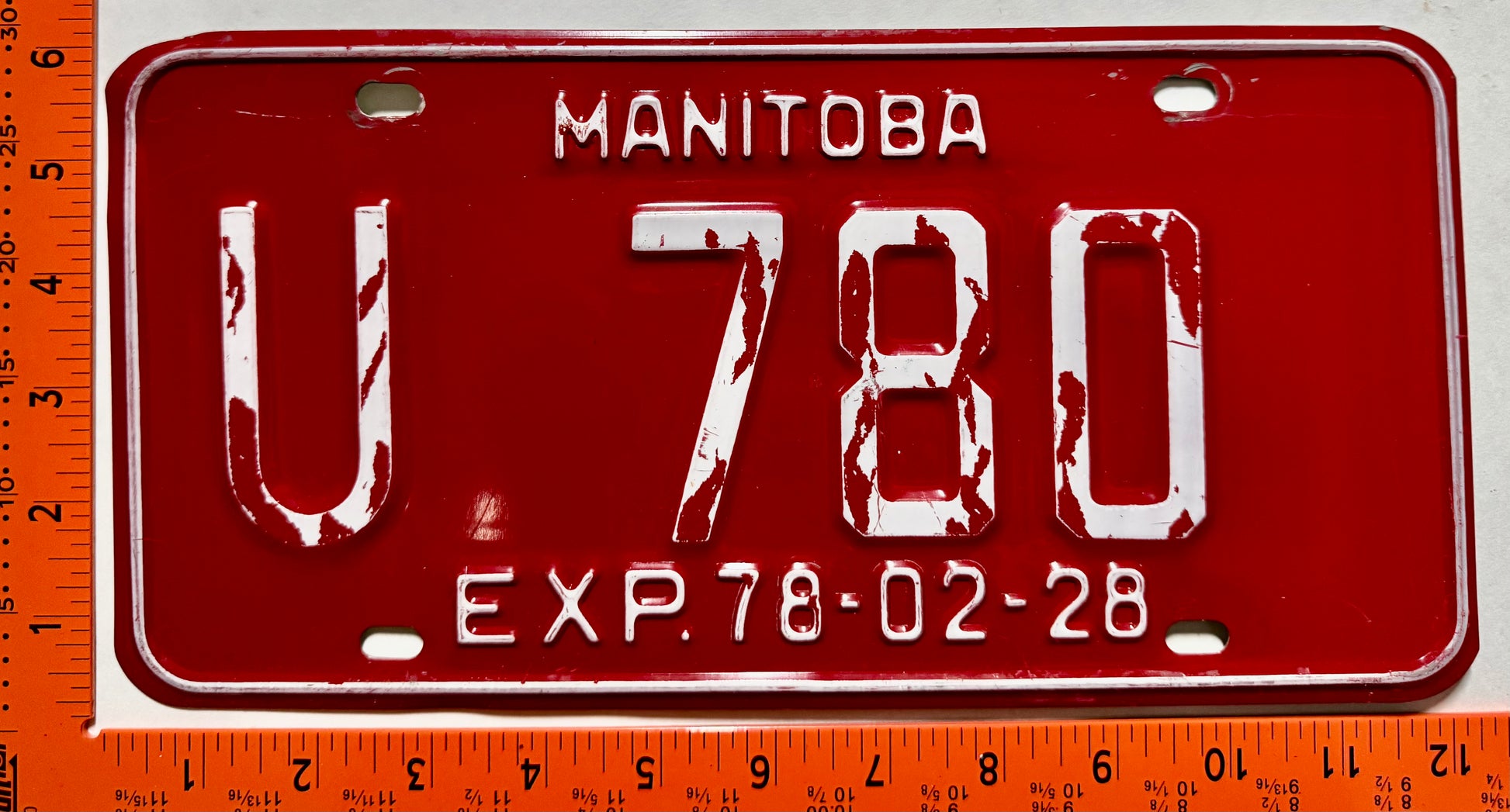 1978 Manitoba #U 780 Rental Car License Plate