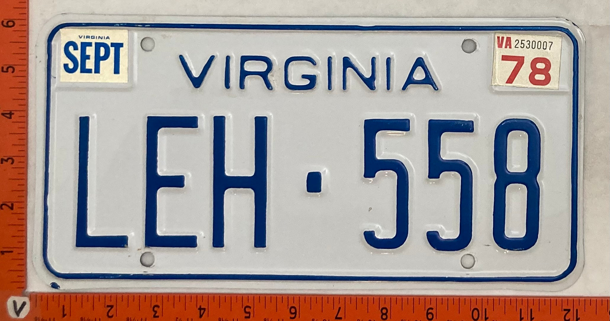 1978 Virginia #LEH-558 Passenger License Plate
