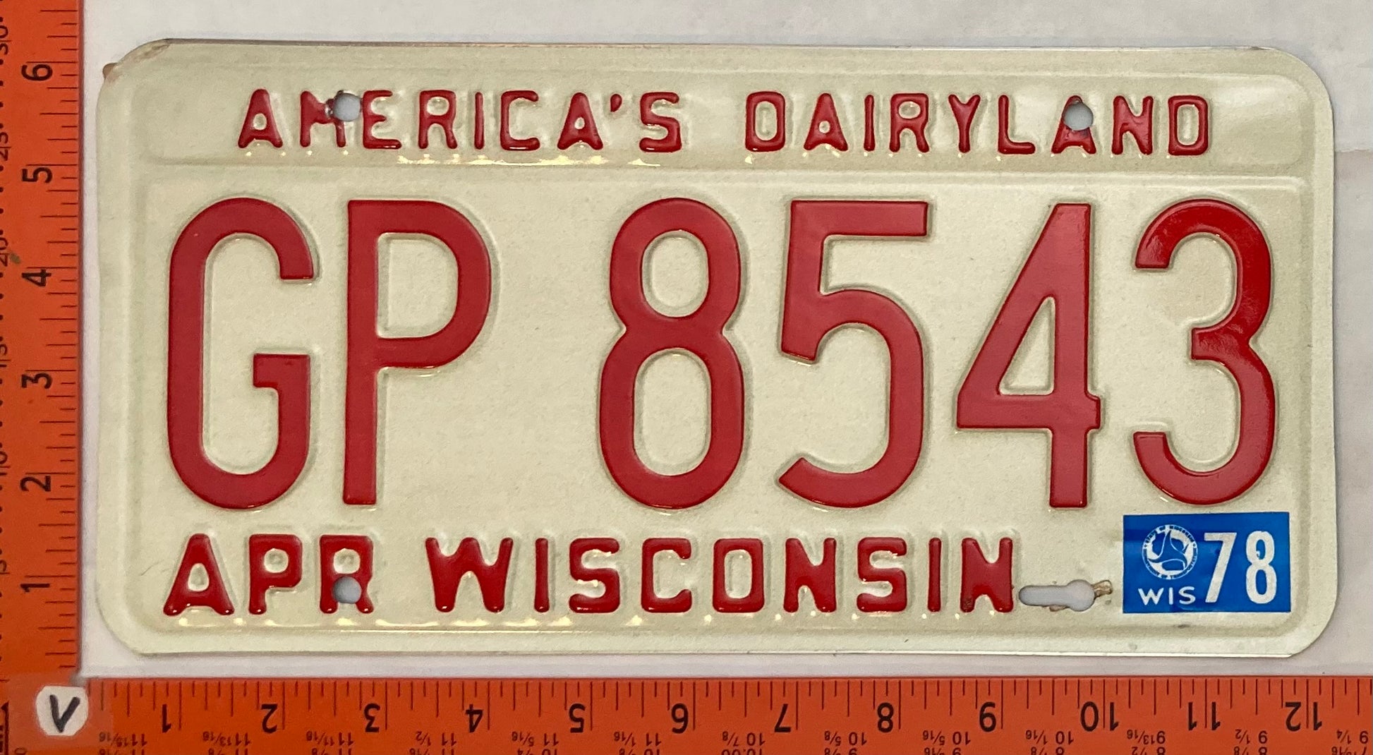 1978 Wisconsin #GP 8543 Passenger License Plate