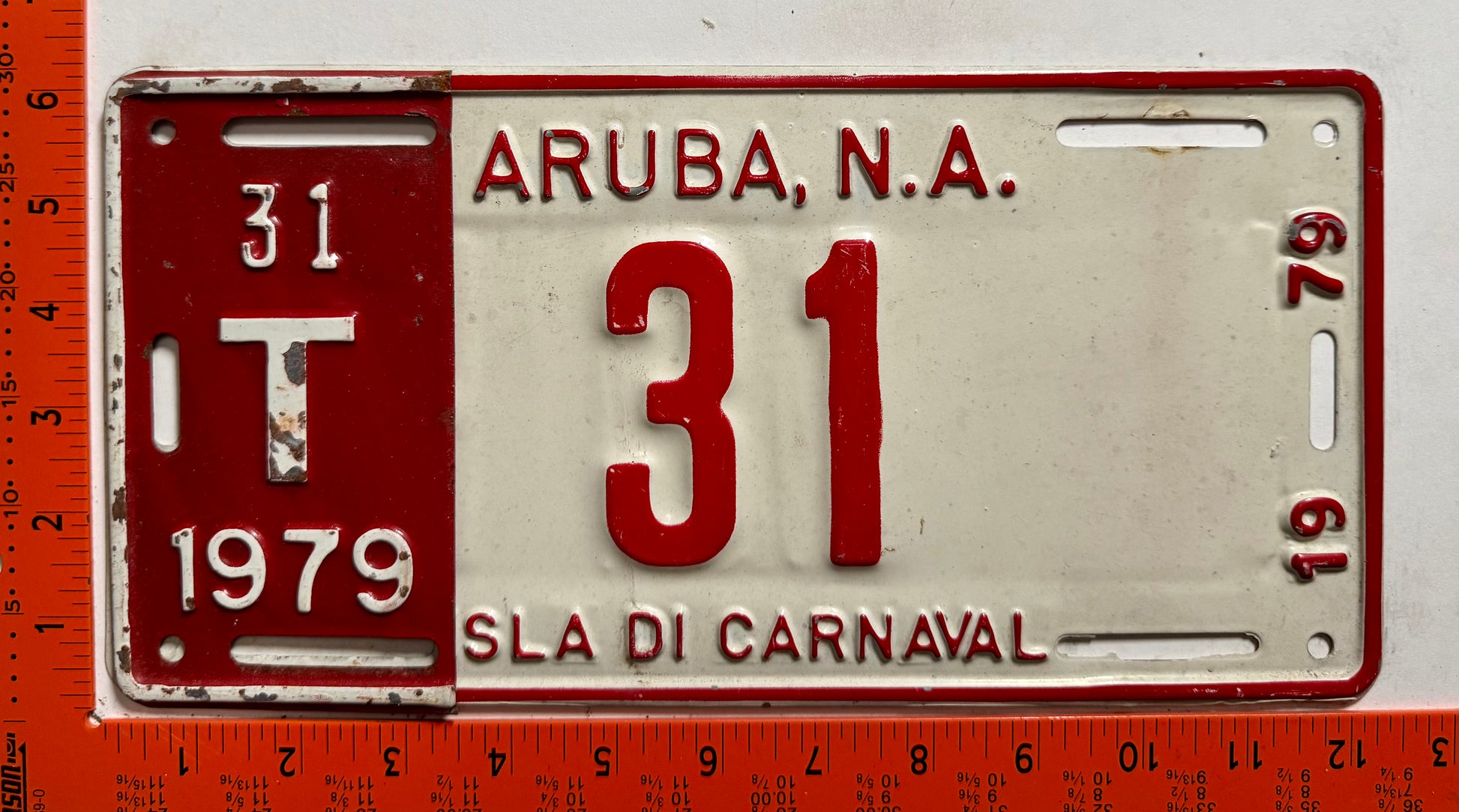 1979 Aruba #T-31 Tourist Vehicle License Plate