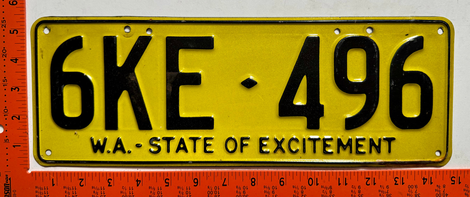 1979 base Western Australia #6KE-496 Passenger License Plate