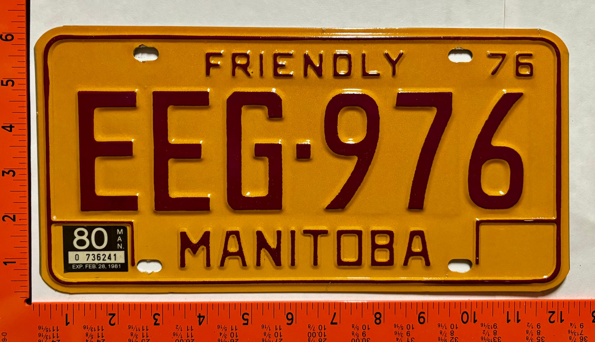 1980 Manitoba #EEG-976 Passenger License Plate
