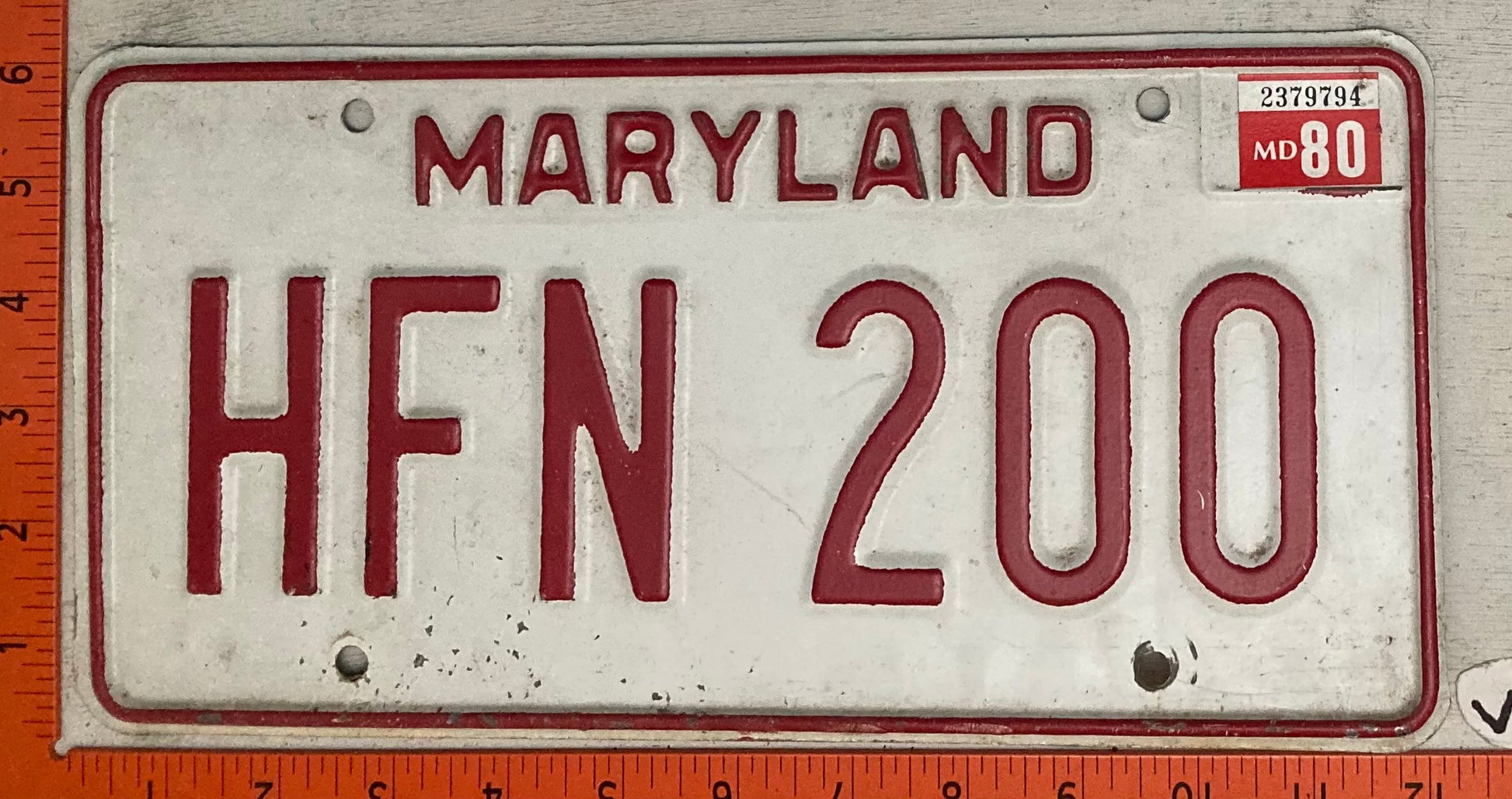 1980 Maryland #HFN 200 Passenger License Plate