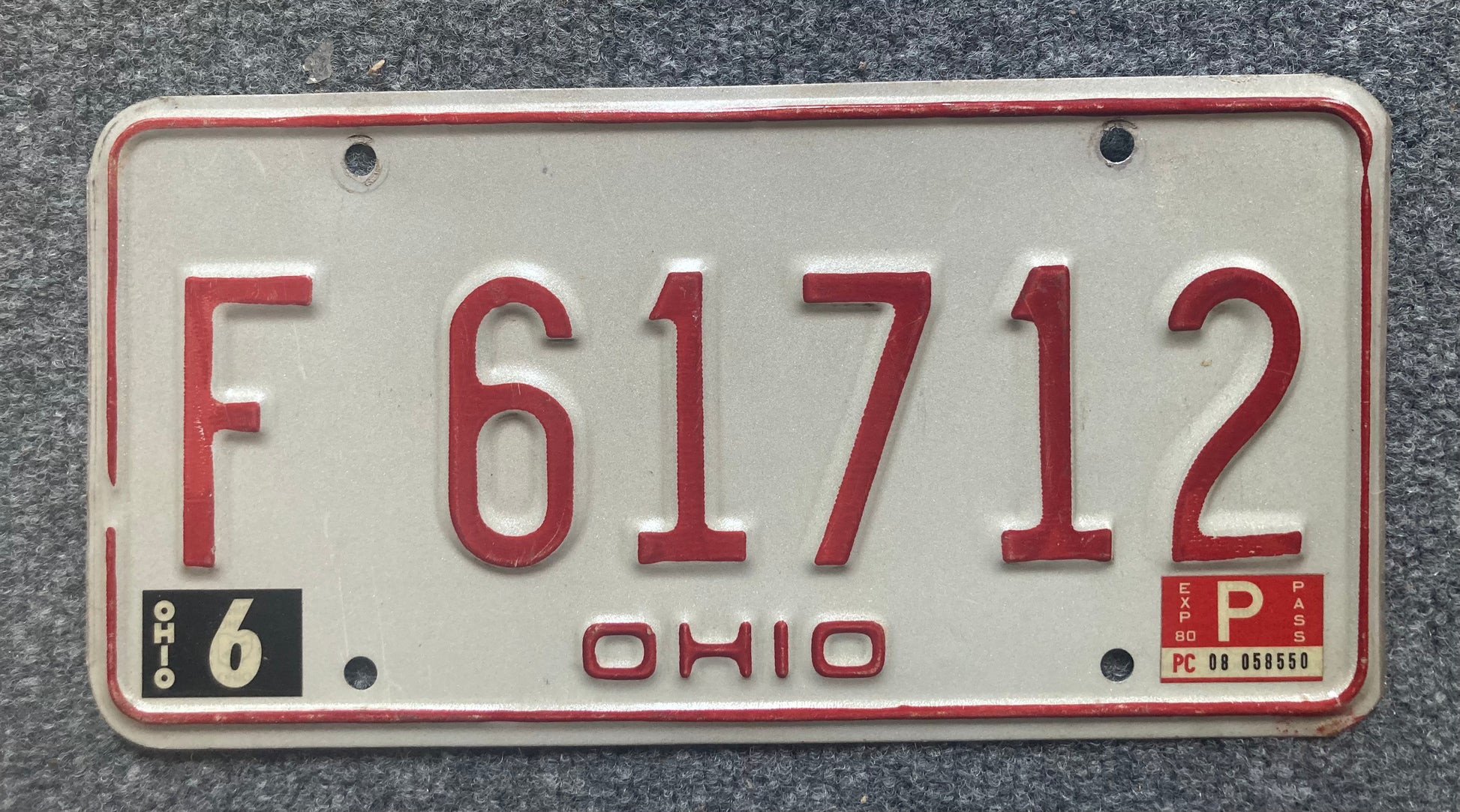 1980 Ohio #F 61712 Passenger License Plate