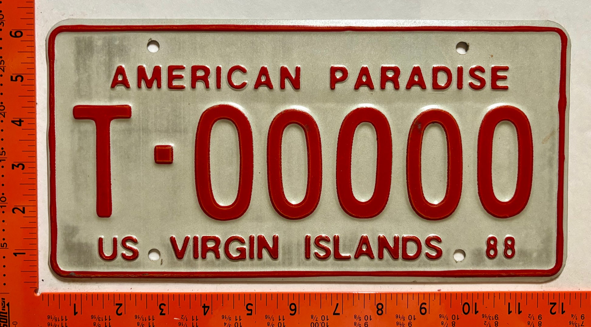 1988 Virgin Islands #T-00000 Passenger Sample License Plate