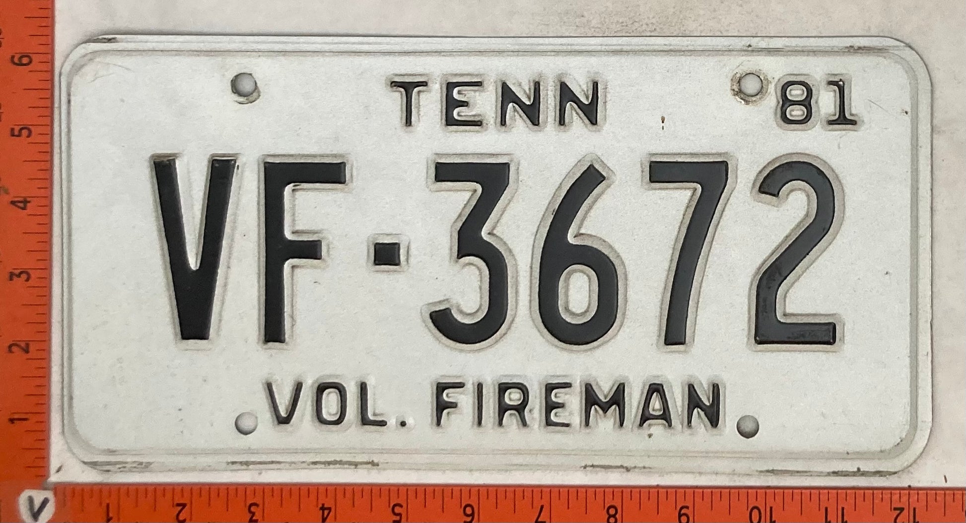 1981 Tennessee #VF-3672 Volunteer Fireman Passenger License Plate