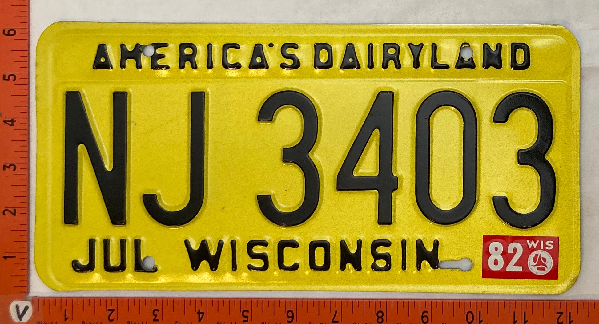 1982 Wisconsin #NJ 3403 Passenger License Plate
