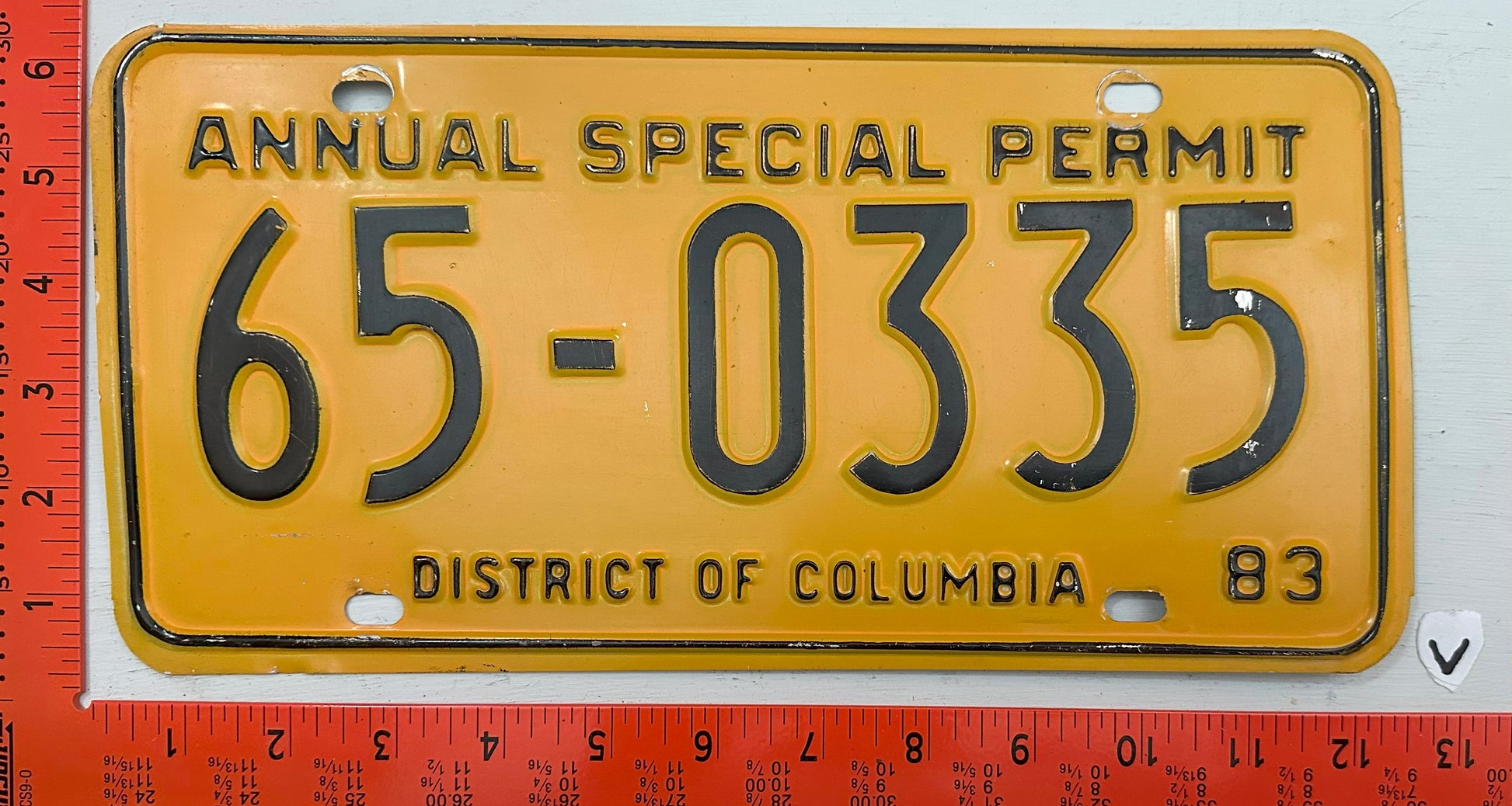 1983 Washington, DC #65-0335 Annual Special Permit License Plate