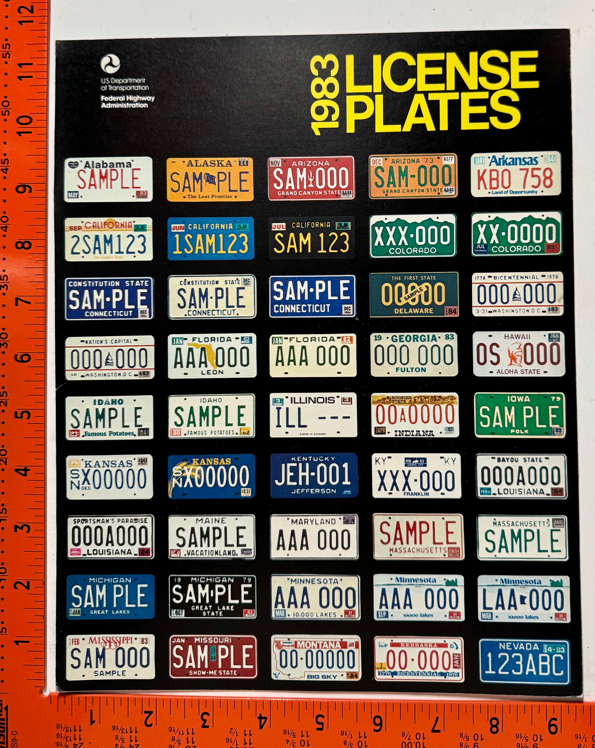 Notes: Shows examples of plates in use that year from all states, Territories, US Forces, Canada and Mexico. Also has table of registration-related data.